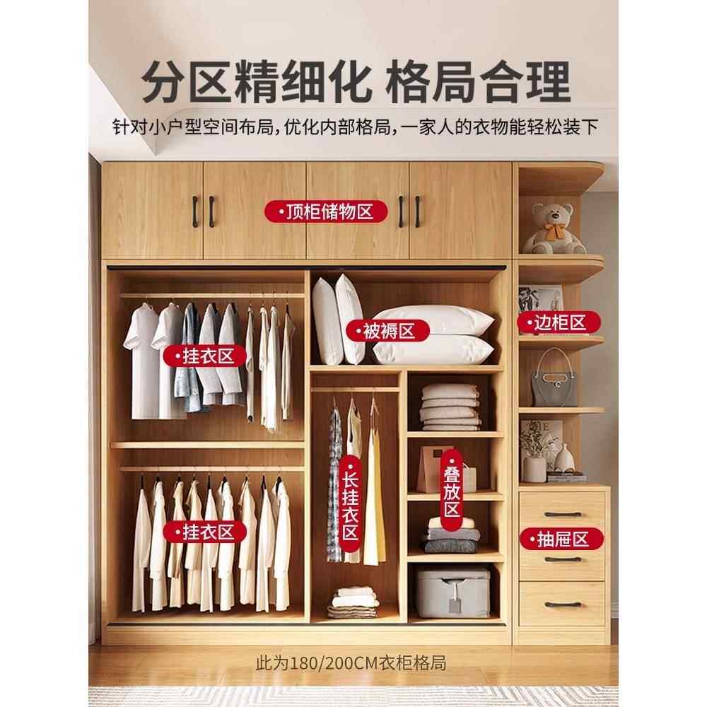 实木衣柜家用卧室推拉门出租房用60cm深儿童柜子新款定制挂式衣橱
