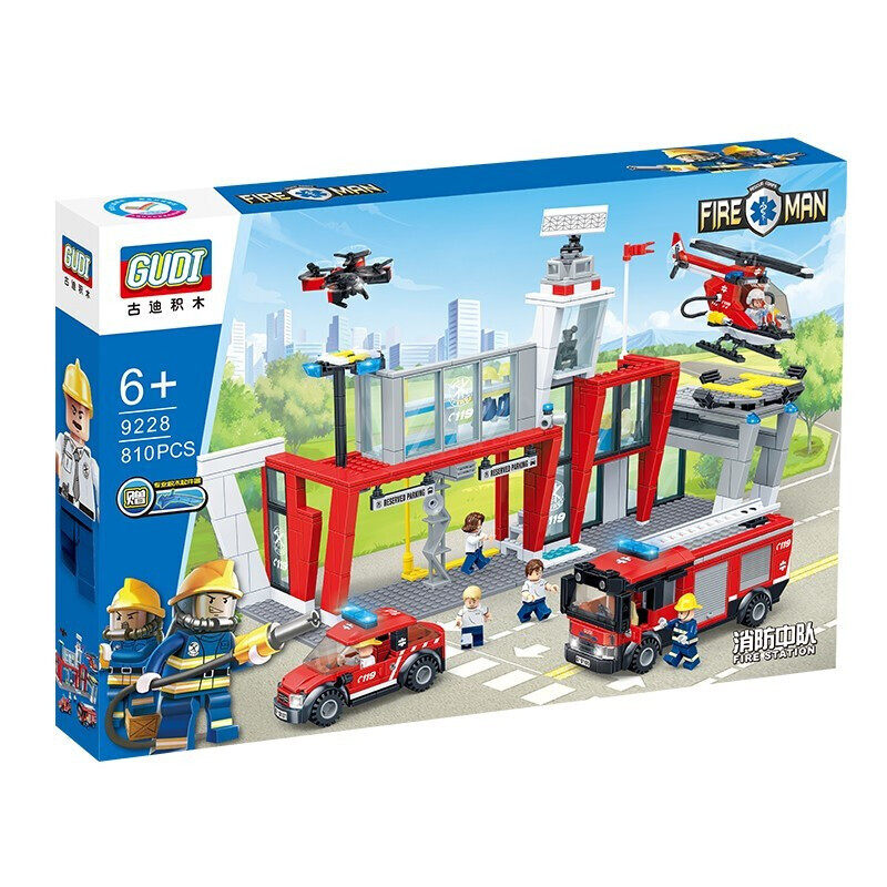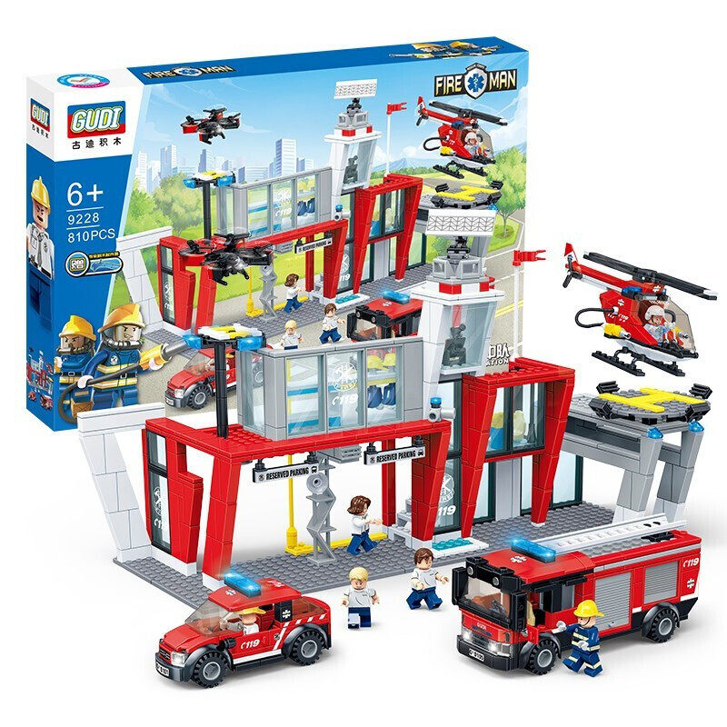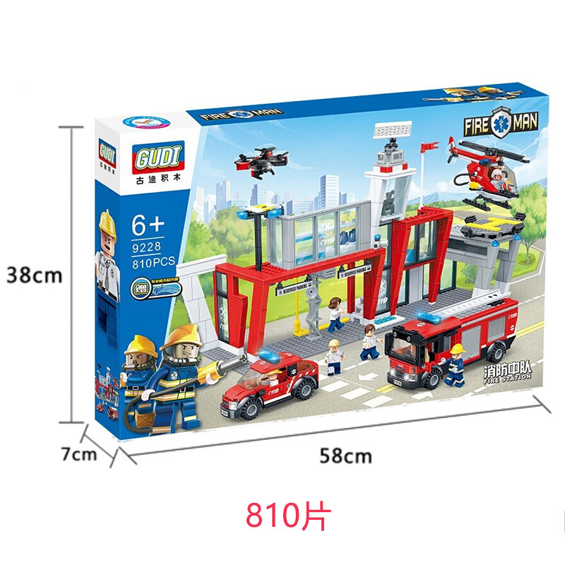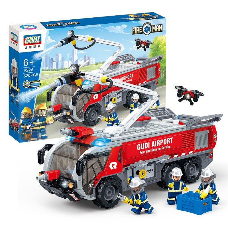 古迪积木拼装启蒙119消防玩具汽车大颗粒救援车儿童6岁以上云梯车