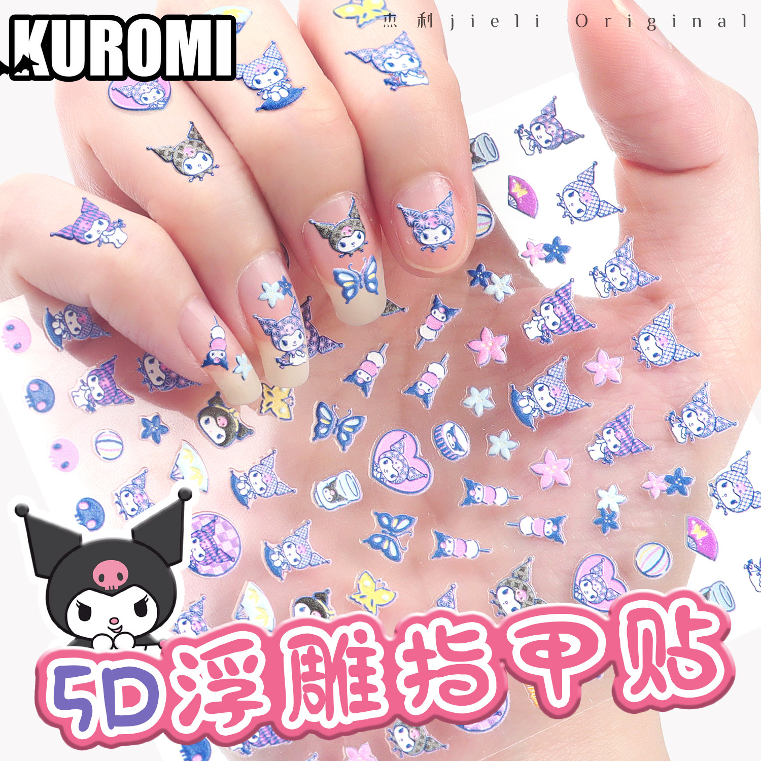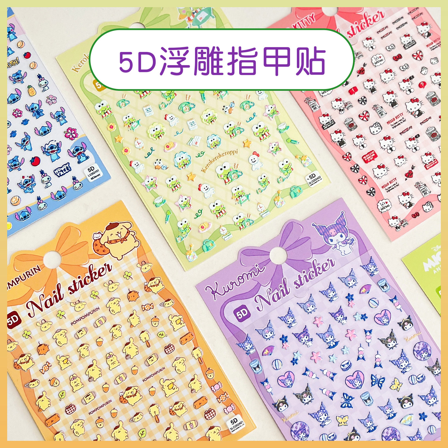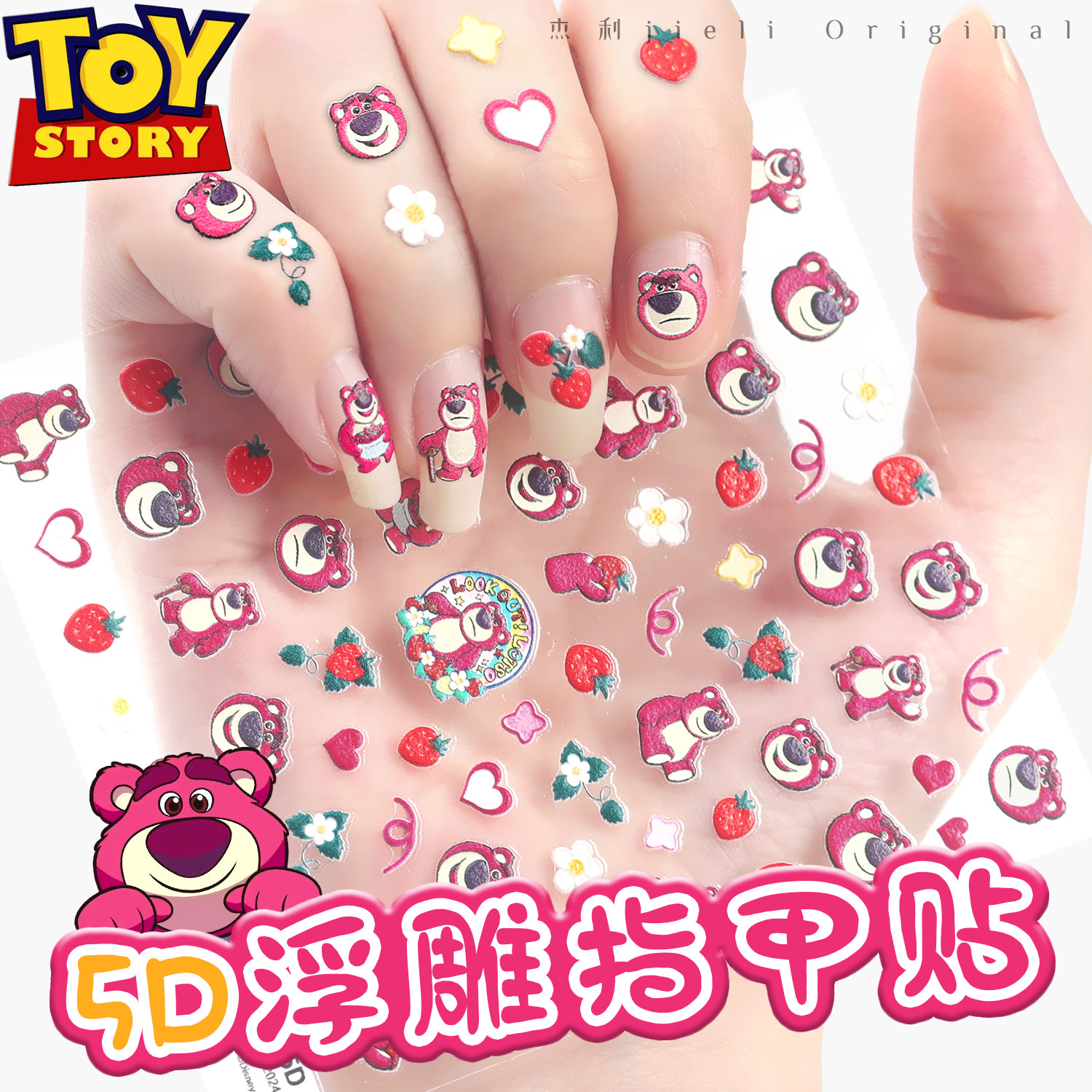 卡通指甲贴5D浮雕儿童女孩卡通美甲贴纸宝宝美甲贴片公主脚趾甲贴迷你小号贴纸夜光荧光手指贴自粘玩具贴纸