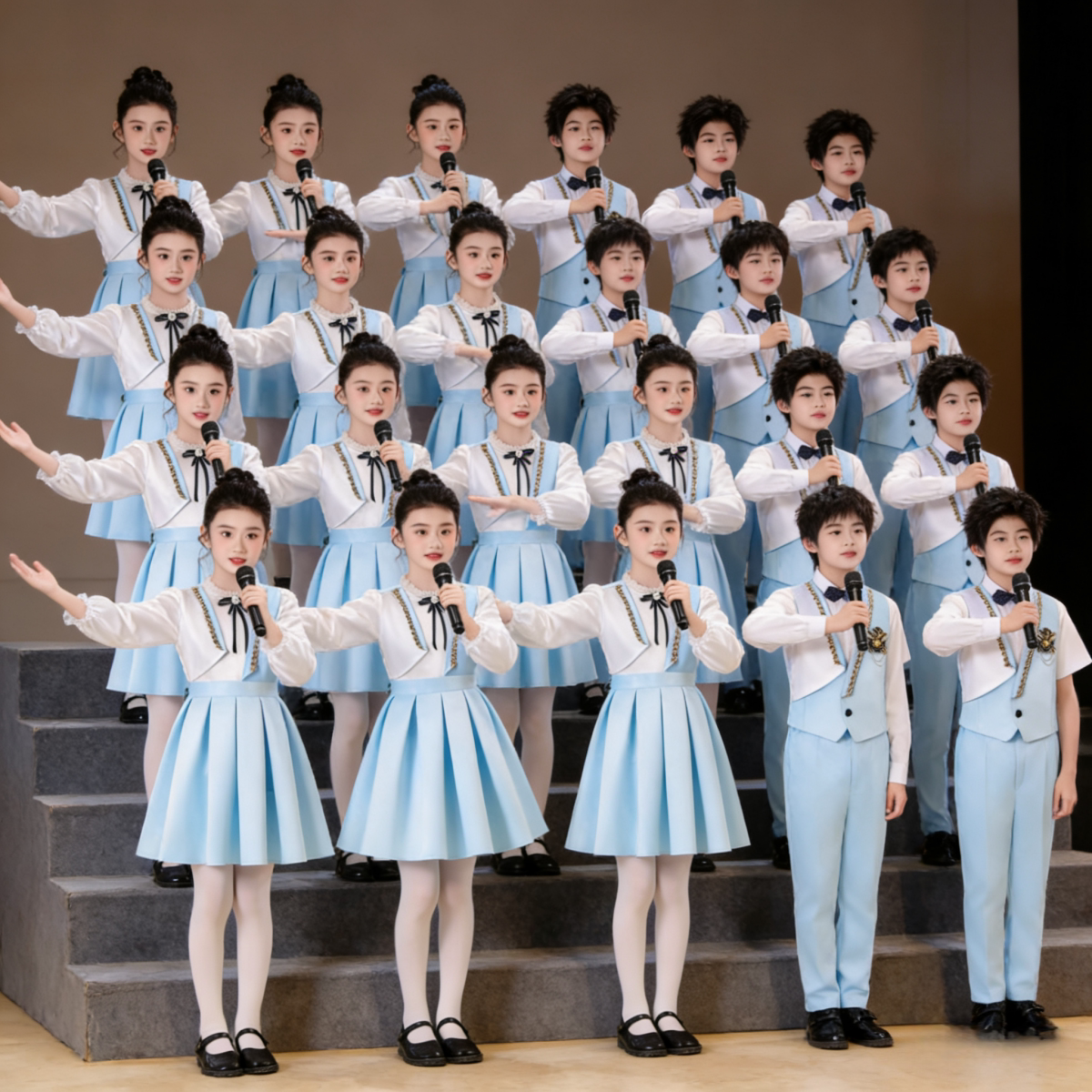 六一儿童合唱演出服学院风蓝色男女童班服诗歌朗诵演讲比赛礼服装