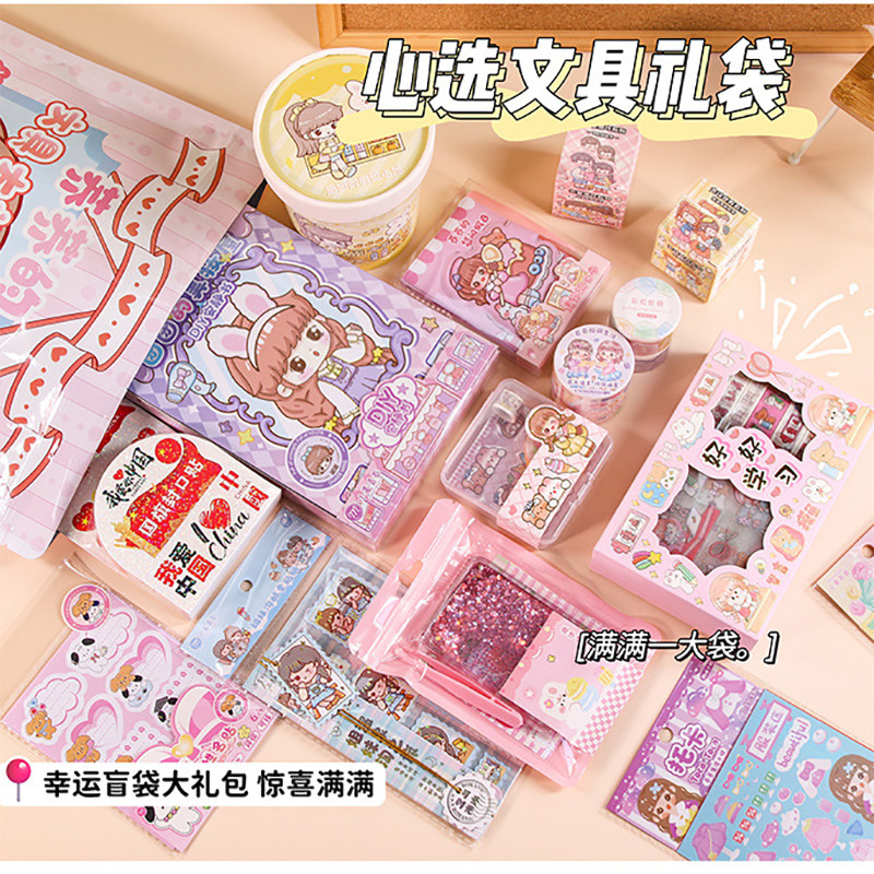 新款超大手账素材袋学生文具惊喜盲袋DIY手账工具全套手提大礼包