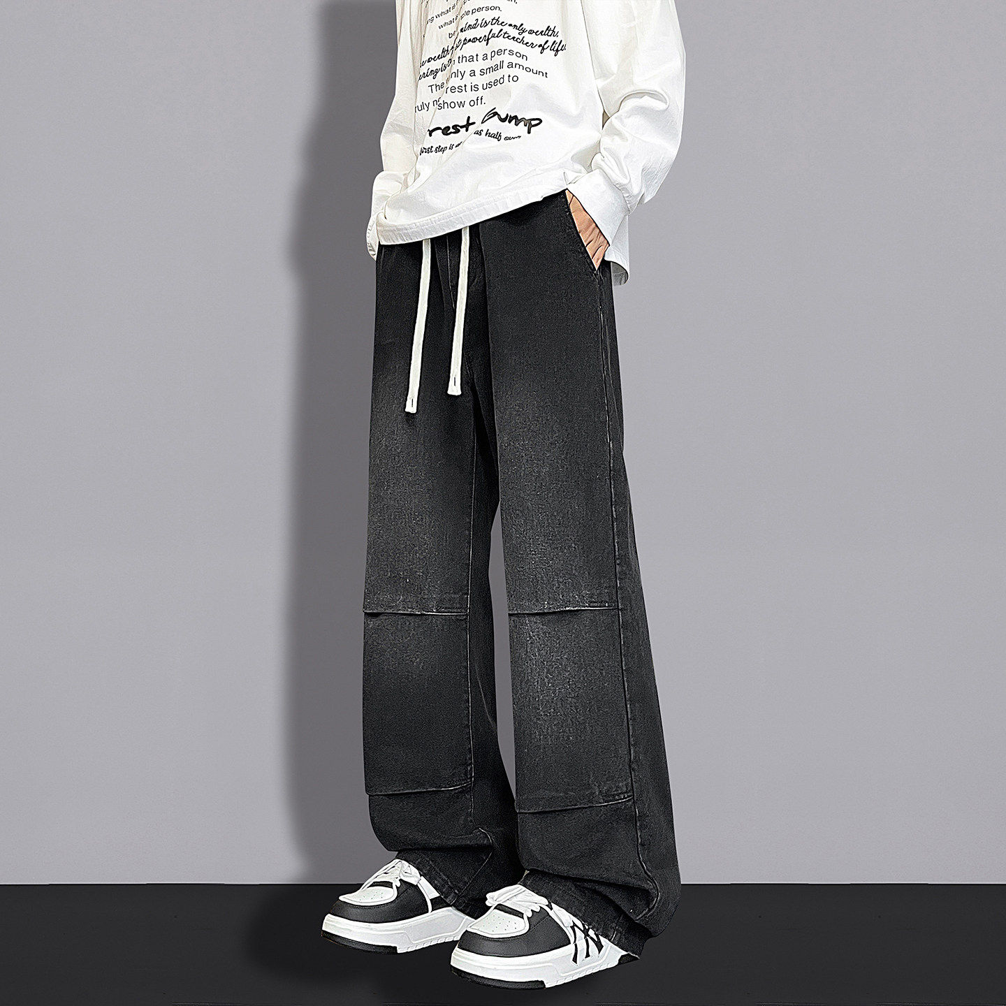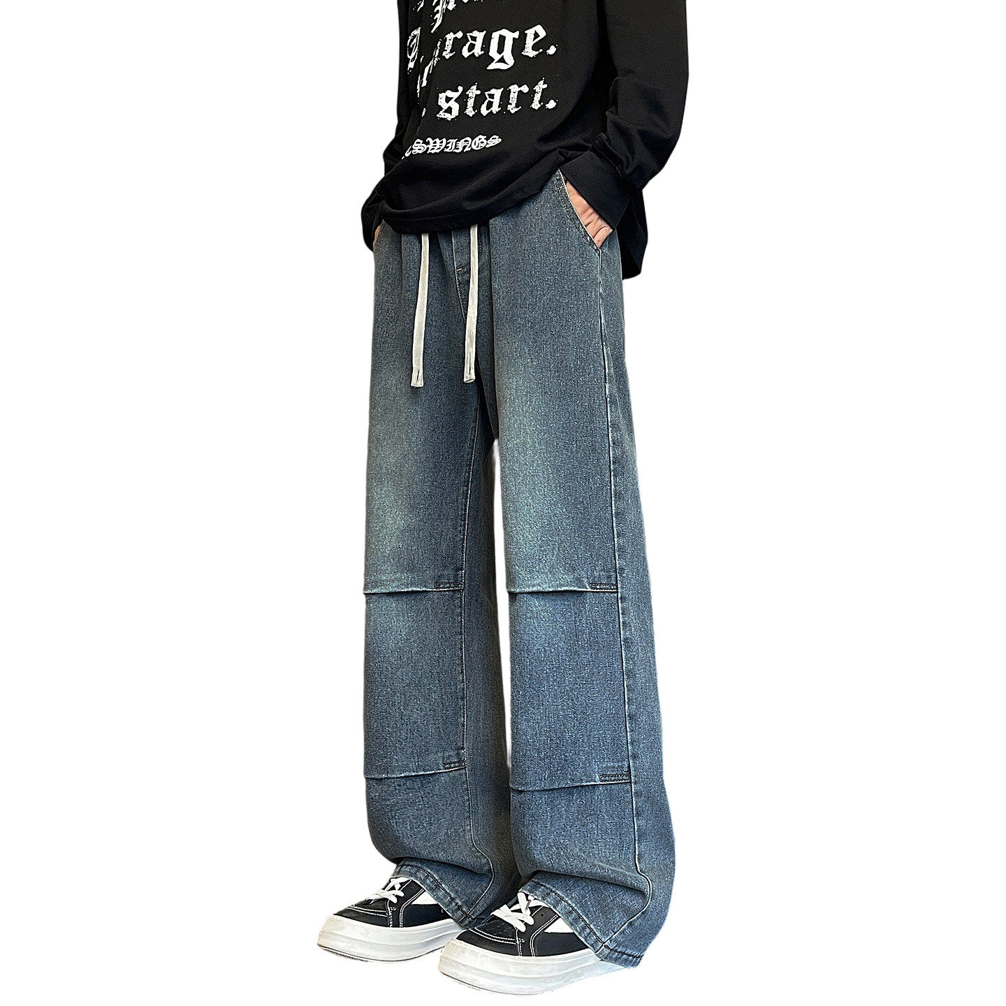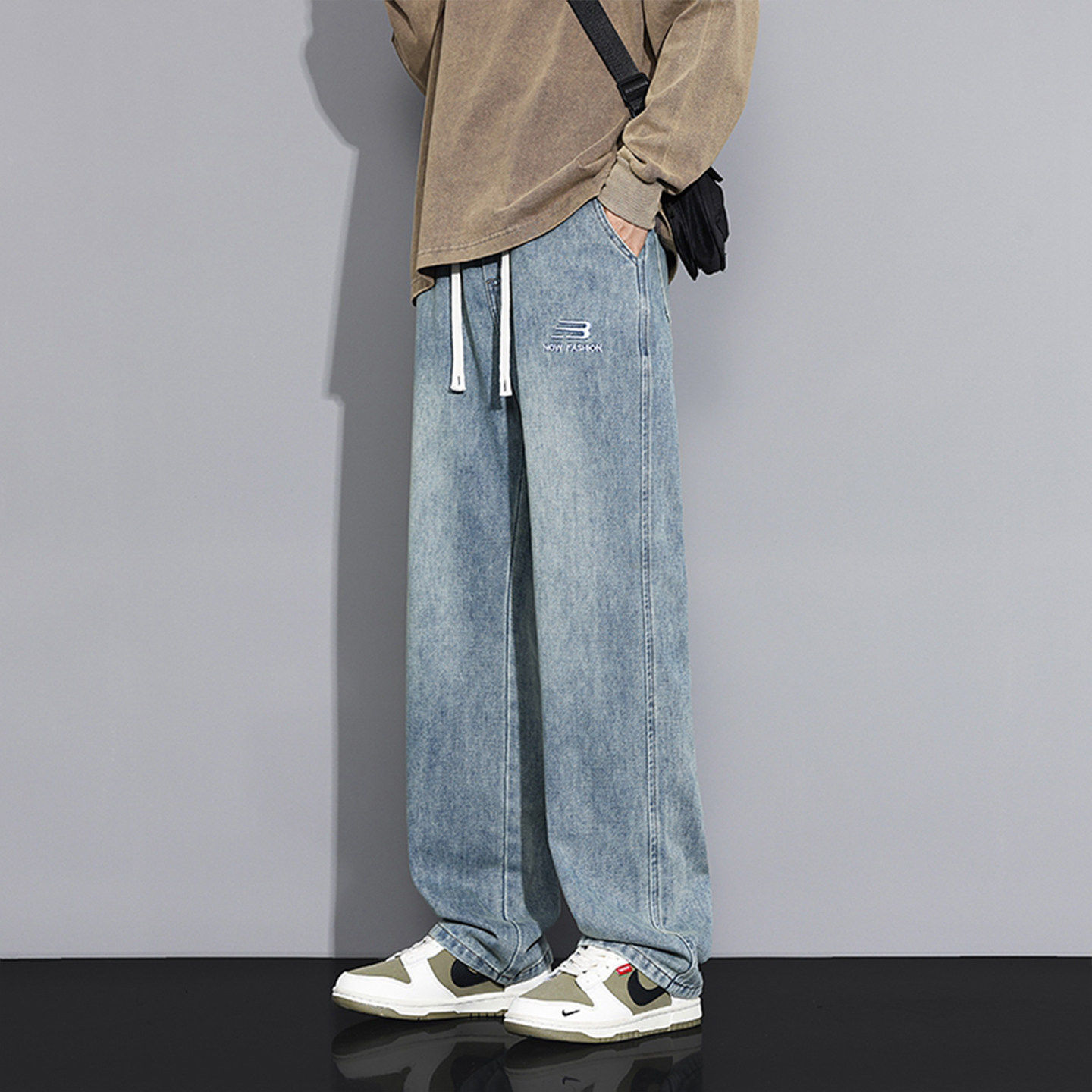 春秋季新款牛仔裤子男生初中高中学生青少年帅气大童宽松直筒长裤