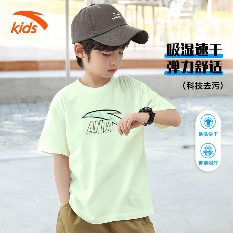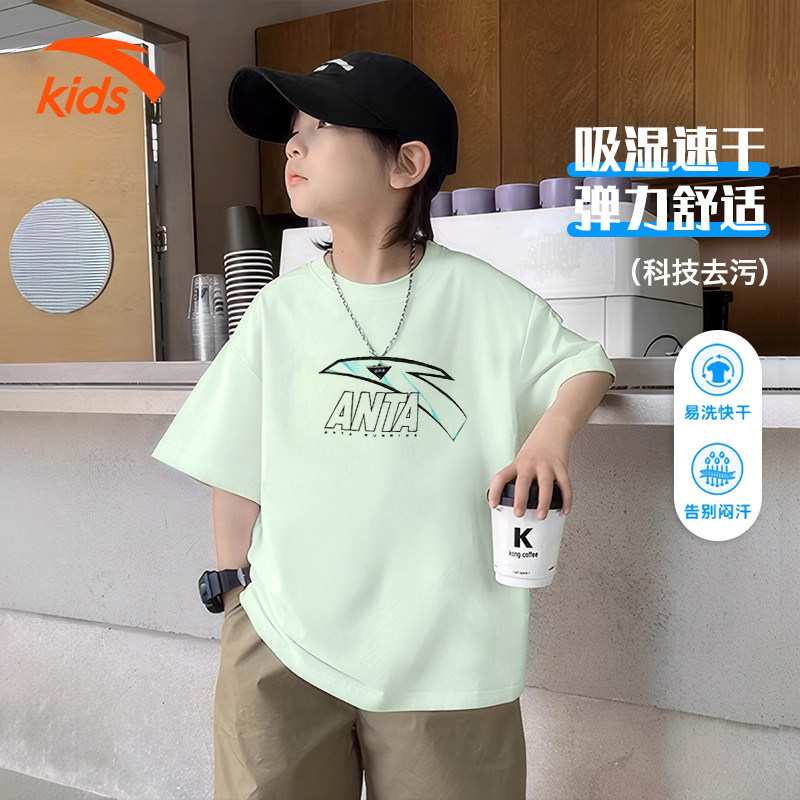 安踏儿童速干短袖T男童2026夏季新品冰丝透气运动上衣时尚T恤衫
