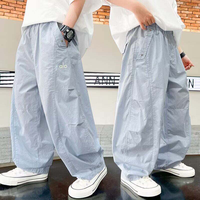 痞帅男童裤子春夏款2026儿童春装阔腿裤春季休闲裤宽松潮蓝色韩版