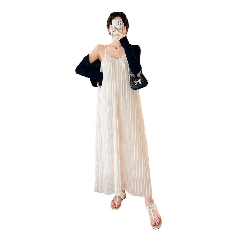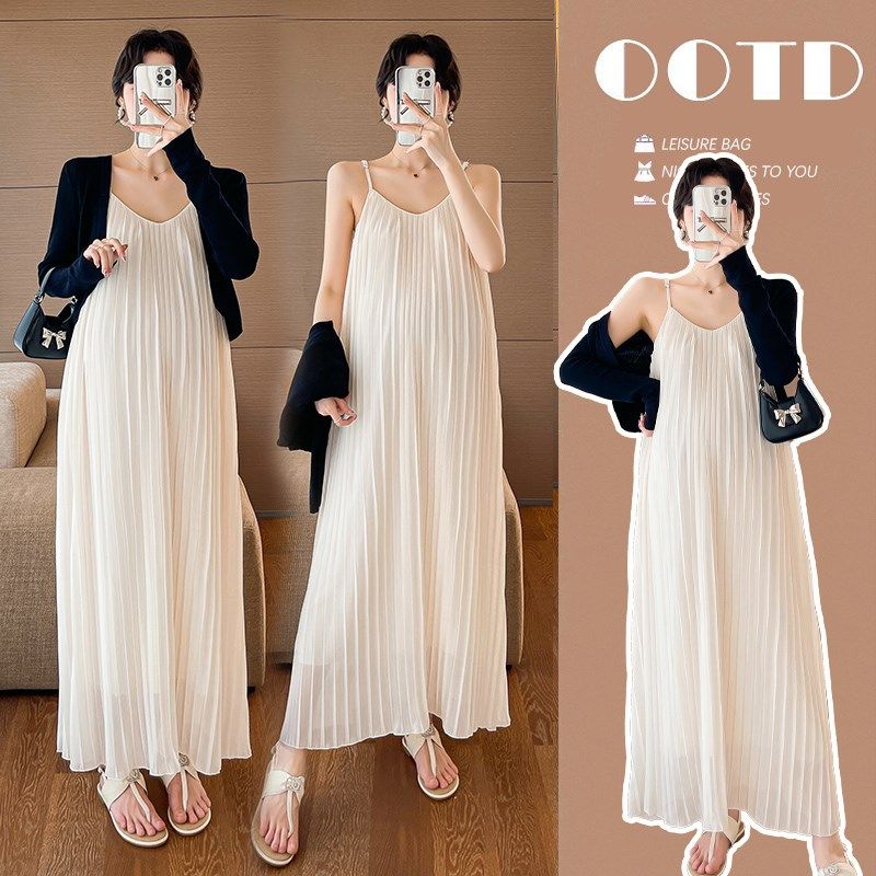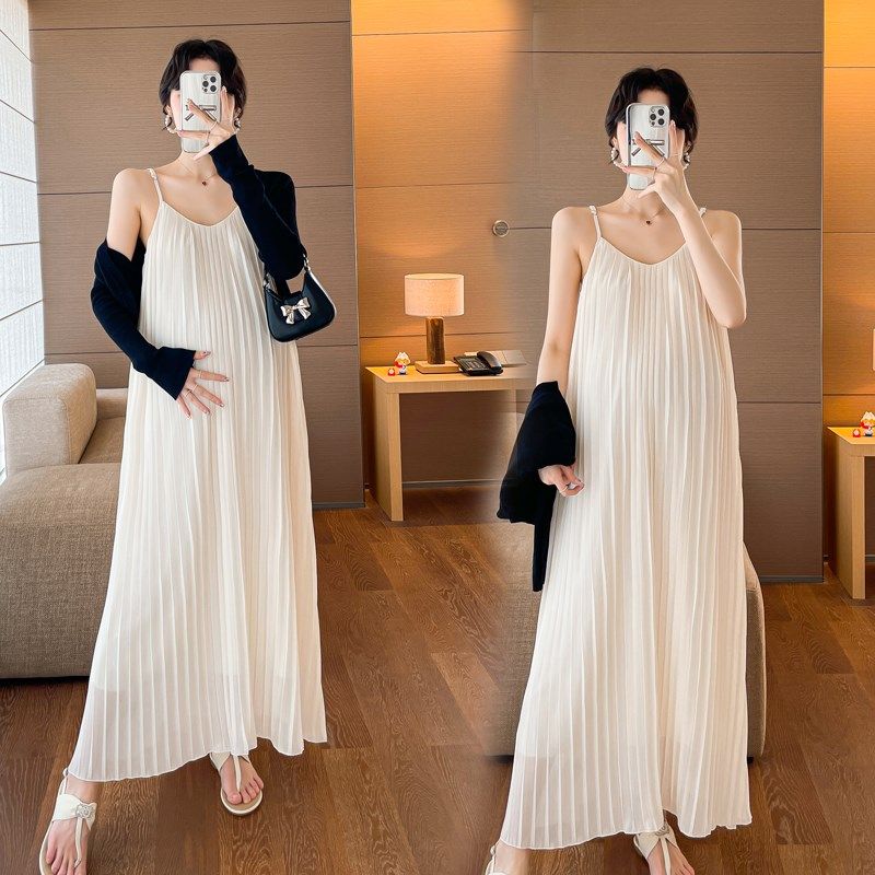 大码孕妇连衣裙夏季2024新款百褶吊带裙两件套长裙遮肚宽松200斤