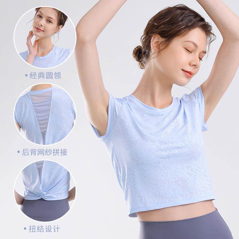 2024短款美背运动上衣女网纱短袖t恤健身跑步罩衫高级感瑜伽服夏