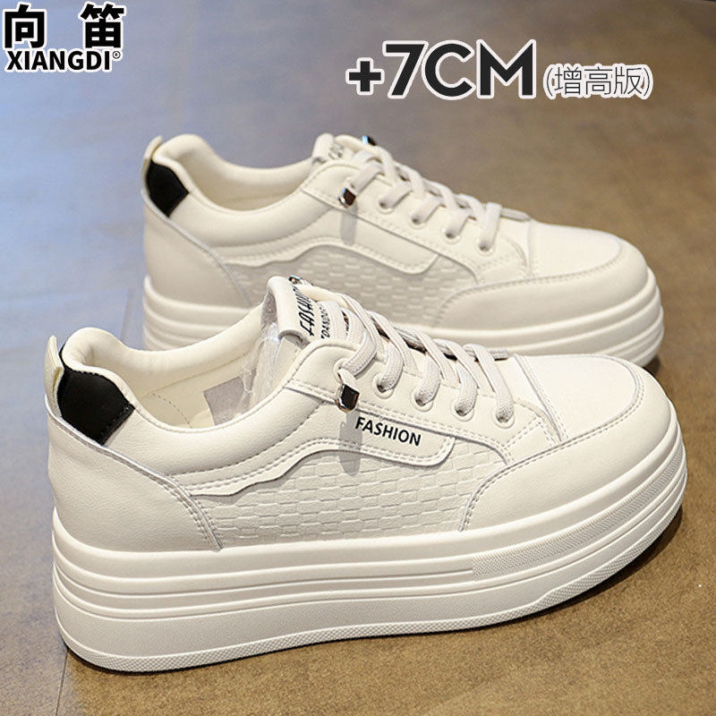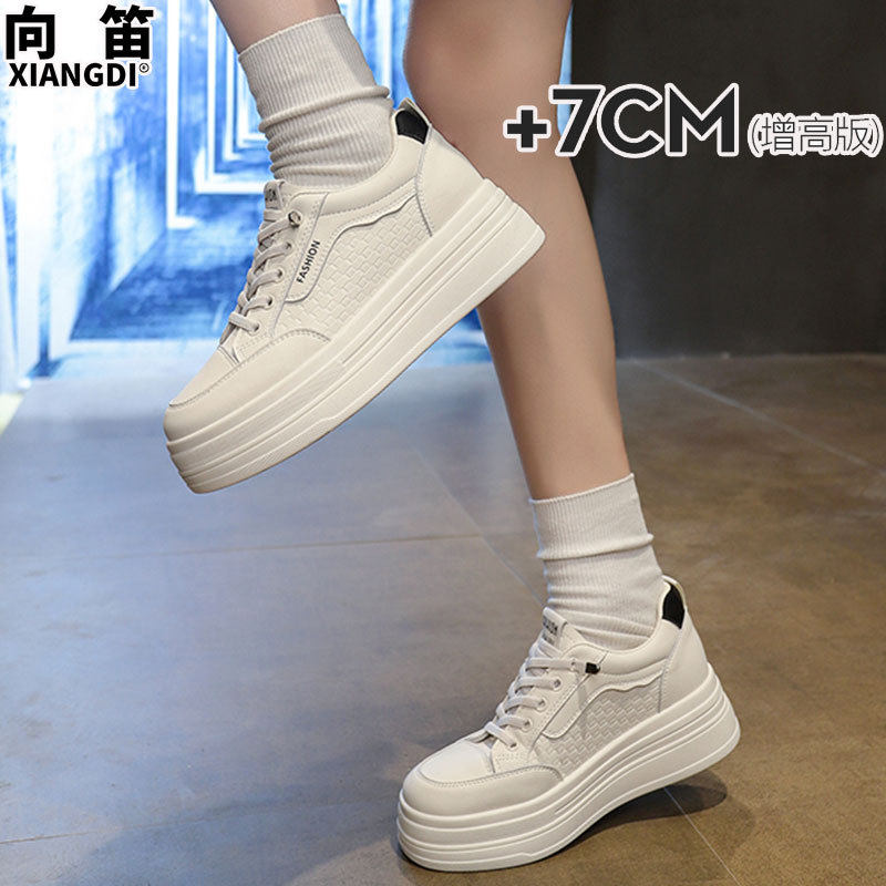 7cm厚底内增高小个子女鞋不累脚单鞋真皮小白鞋休闲运动鞋松糕鞋