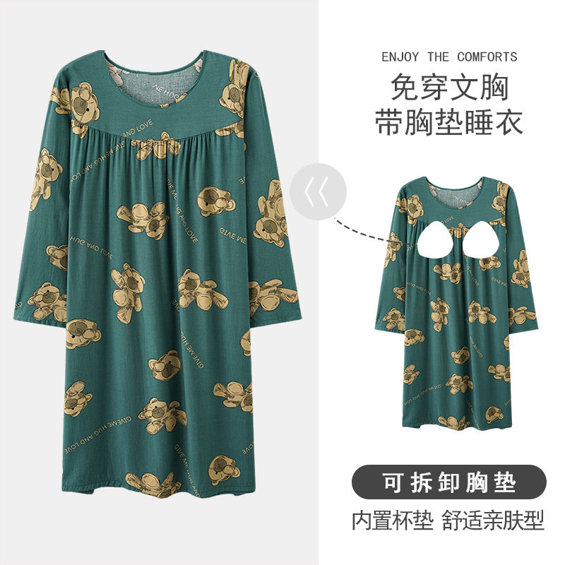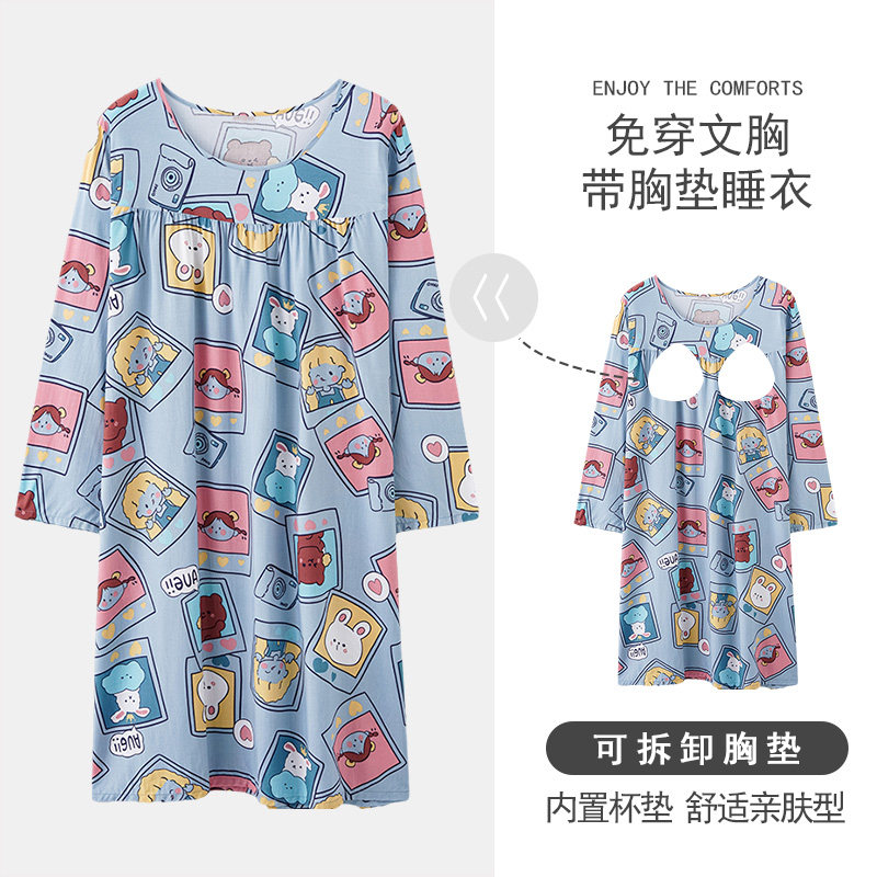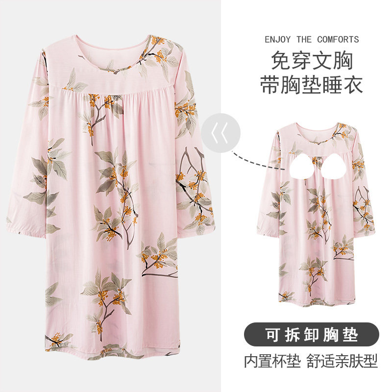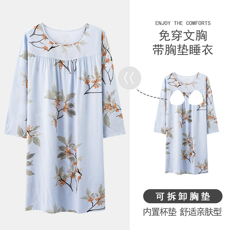 春秋季睡裙人造棉女裙睡衣长袖女夏天棉绸连衣裙中长款薄款家居服