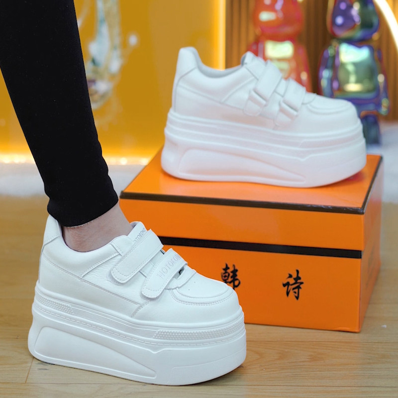 小个子增高8cm魔术贴厚底小白鞋女2026春小个子百搭增高休闲板鞋