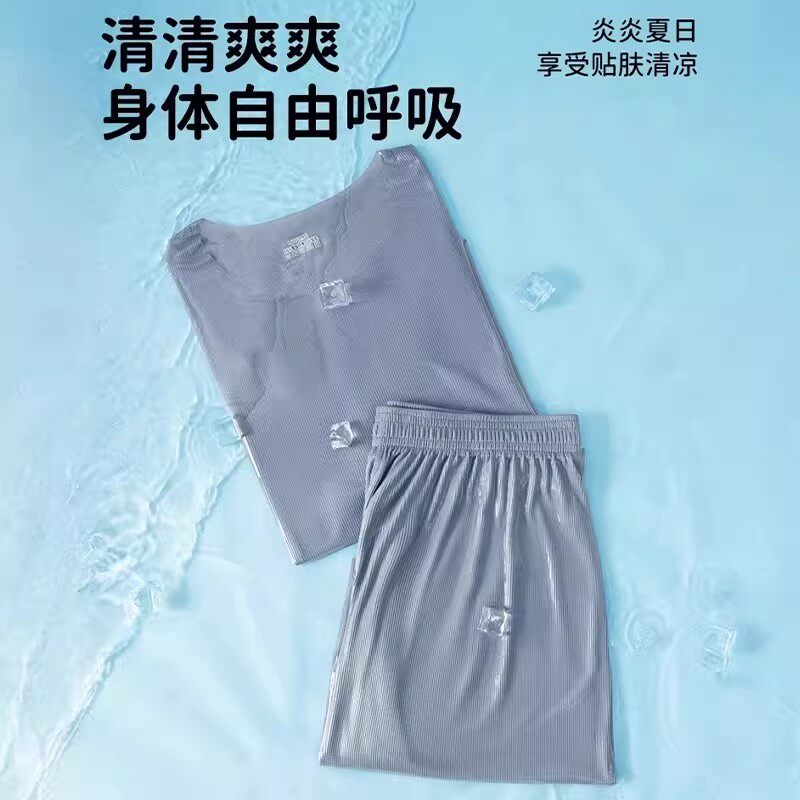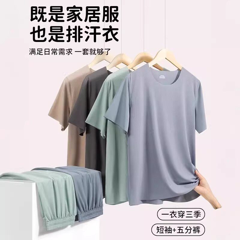 莫代尔男士夏季睡衣冰丝短袖新款学生青少年家居服套装薄款