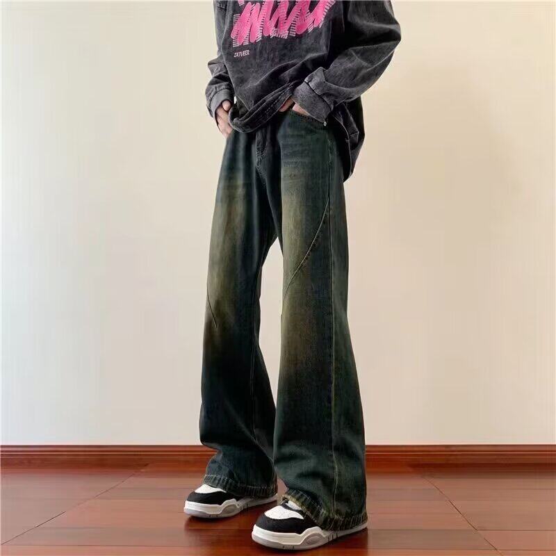美式复古阔腿裤子男女款牛仔裤春秋季vibe风高街直筒宽松微喇裤潮