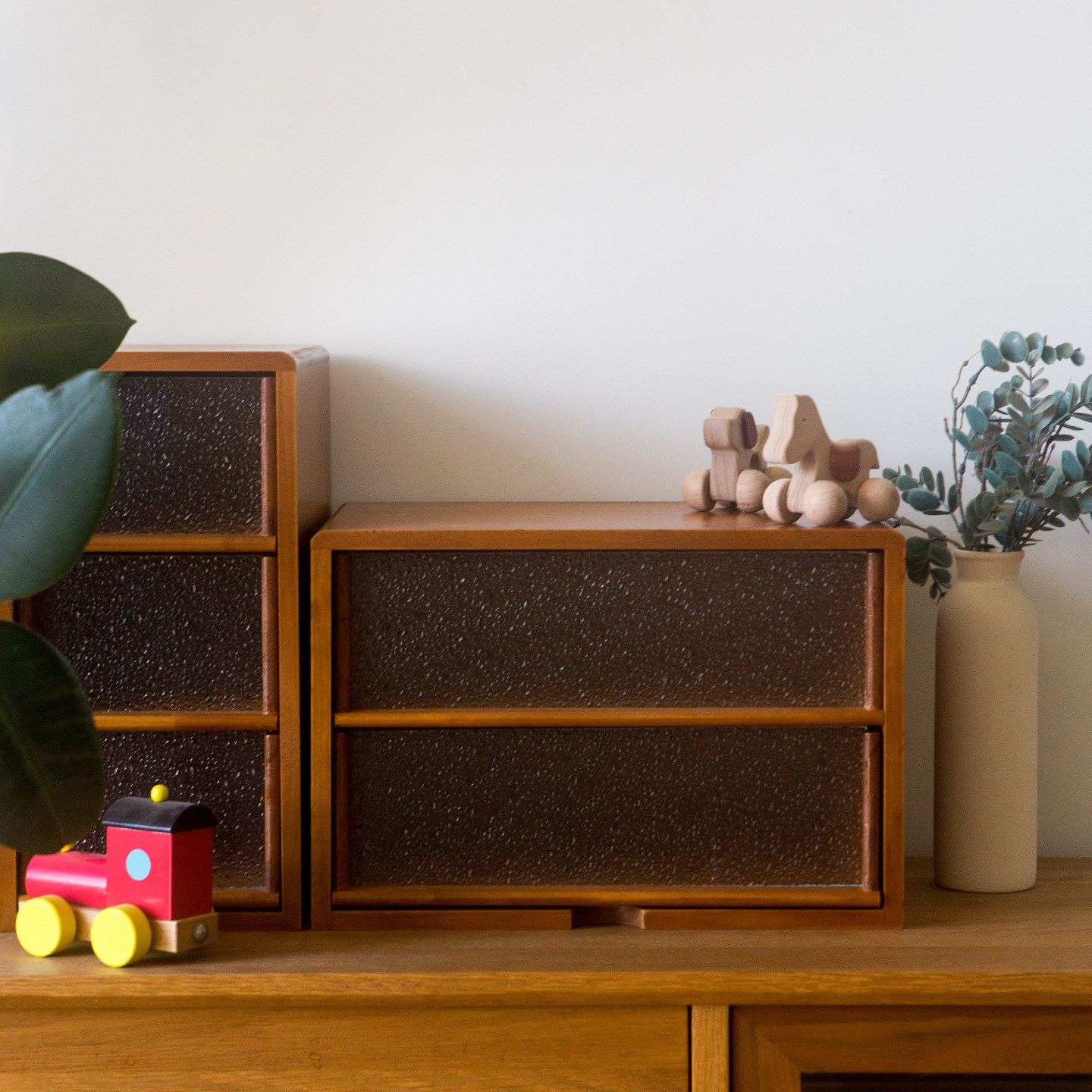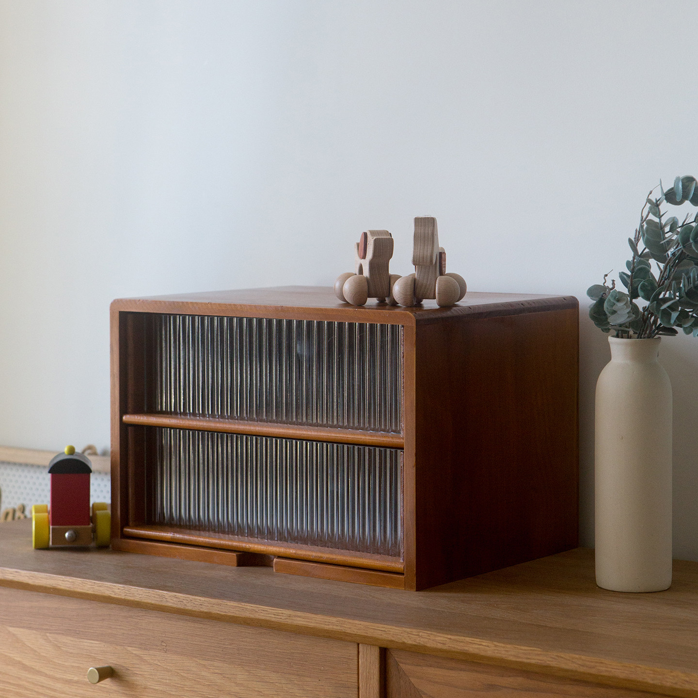 复古木制桌面收纳柜迷你抽屉式玻璃多层实木置物柜A4纸杂物收纳盒