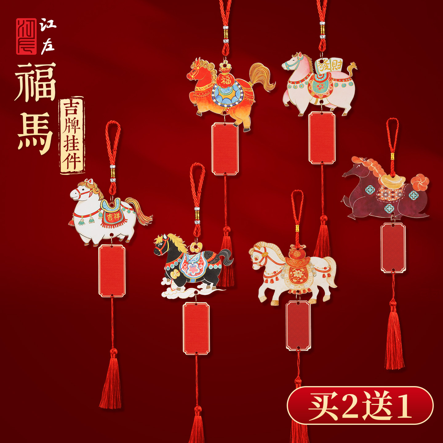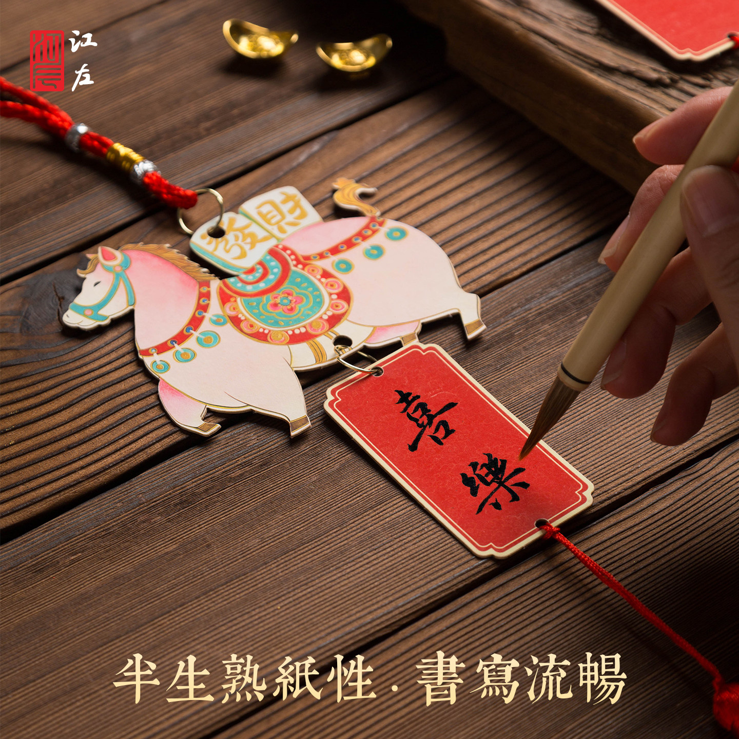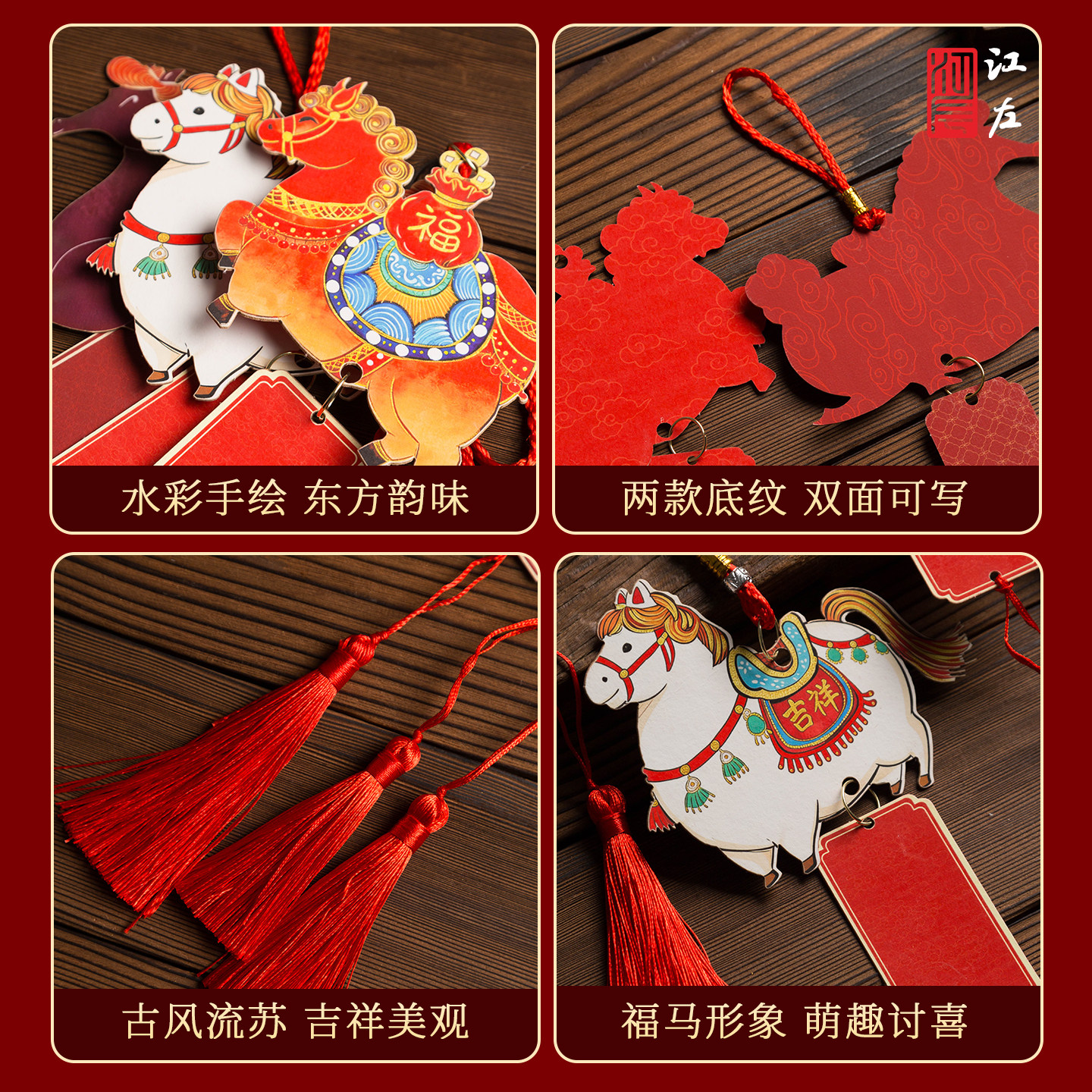 江左2026年马年新款宣纸福卡挂件万年红空白福牌挂件新年祈愿手写福字纸手工书法作品纸文创diy挂件春节贺卡