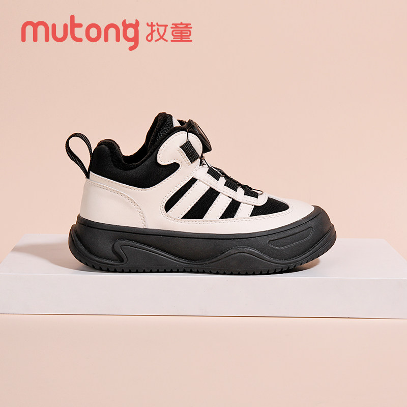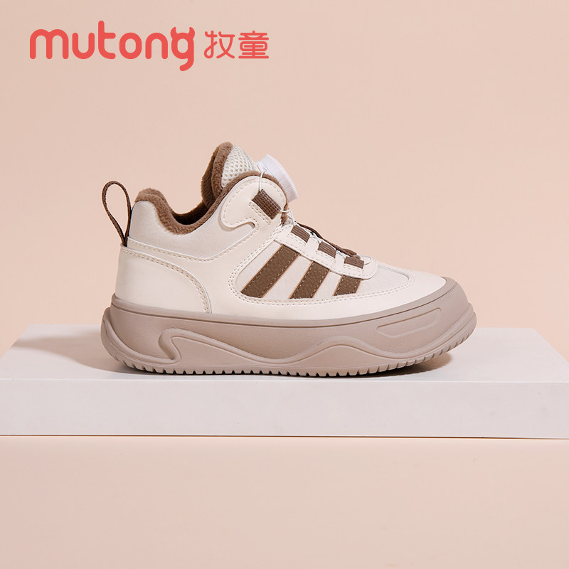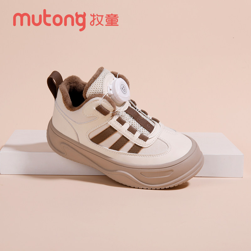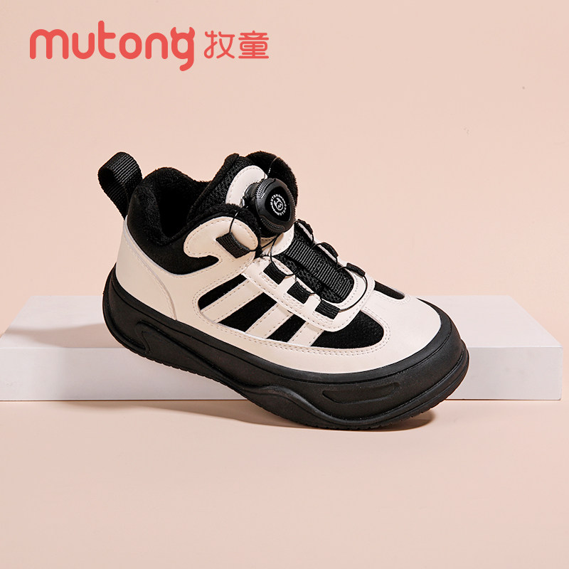 牧童童鞋冬季新款二棉加绒舒适时尚旋转扣皮面防水防滑防踢棉鞋