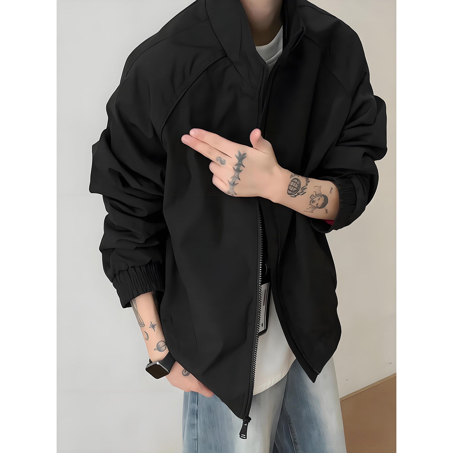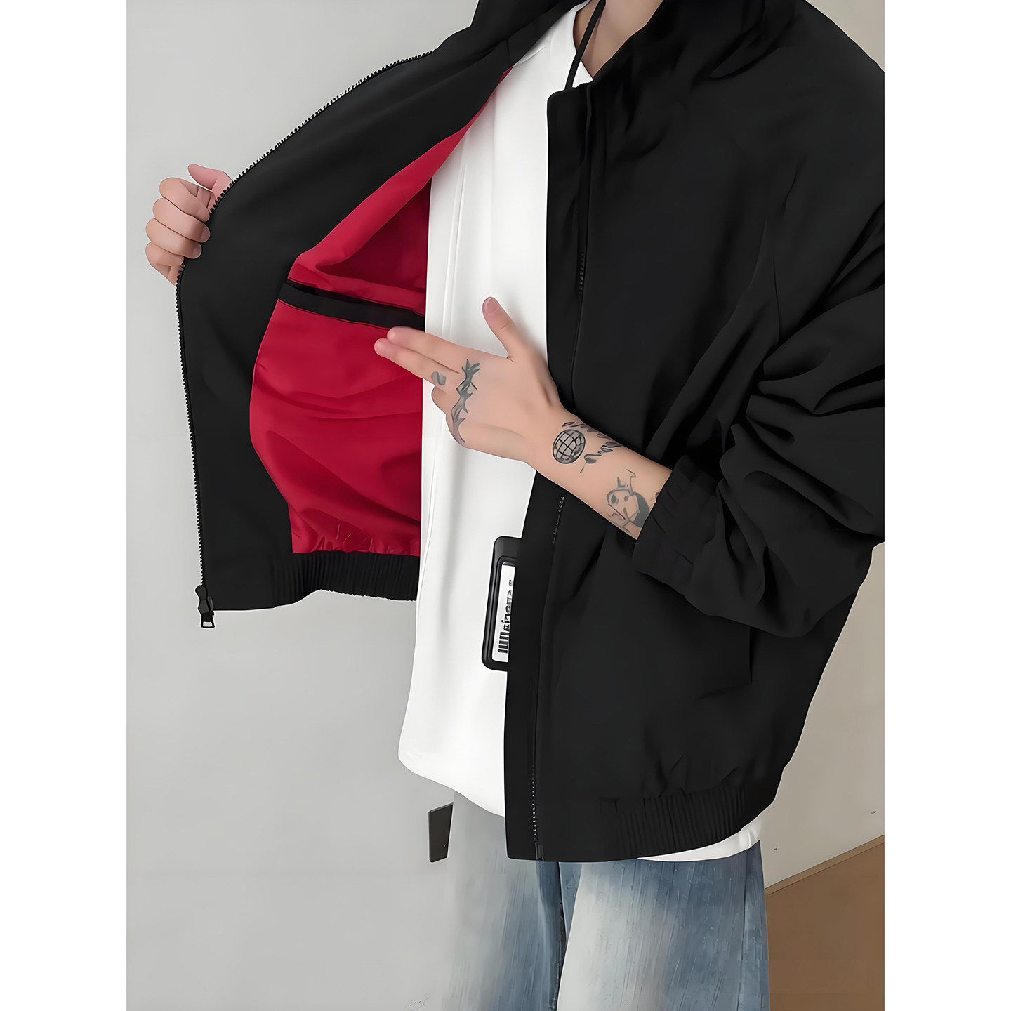 黑红撞色美式立领飞行夹克男款春季廓形外套高级感痞帅工装冲锋衣