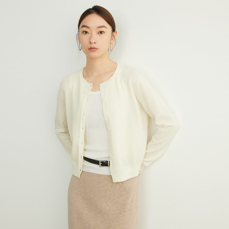 美利奴纯羊毛衫上衣2026早春新款女装针织开衫薄款女长袖毛衣外套