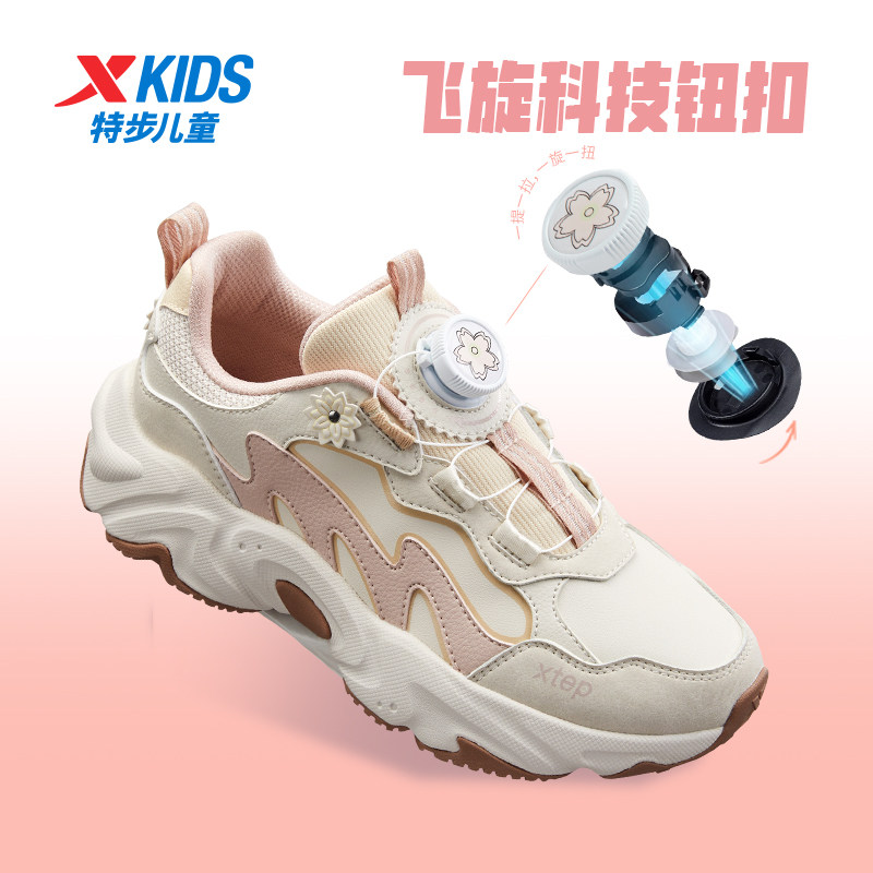 特步女童鞋2024秋冬季新款皮面保暖儿童运动鞋中大童休闲老爹鞋子
