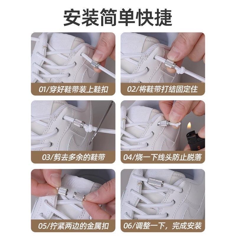 懒人免系鞋带黑色圆绳马丁靴女款松紧弹力皮鞋鞋带扣固定器工装靴