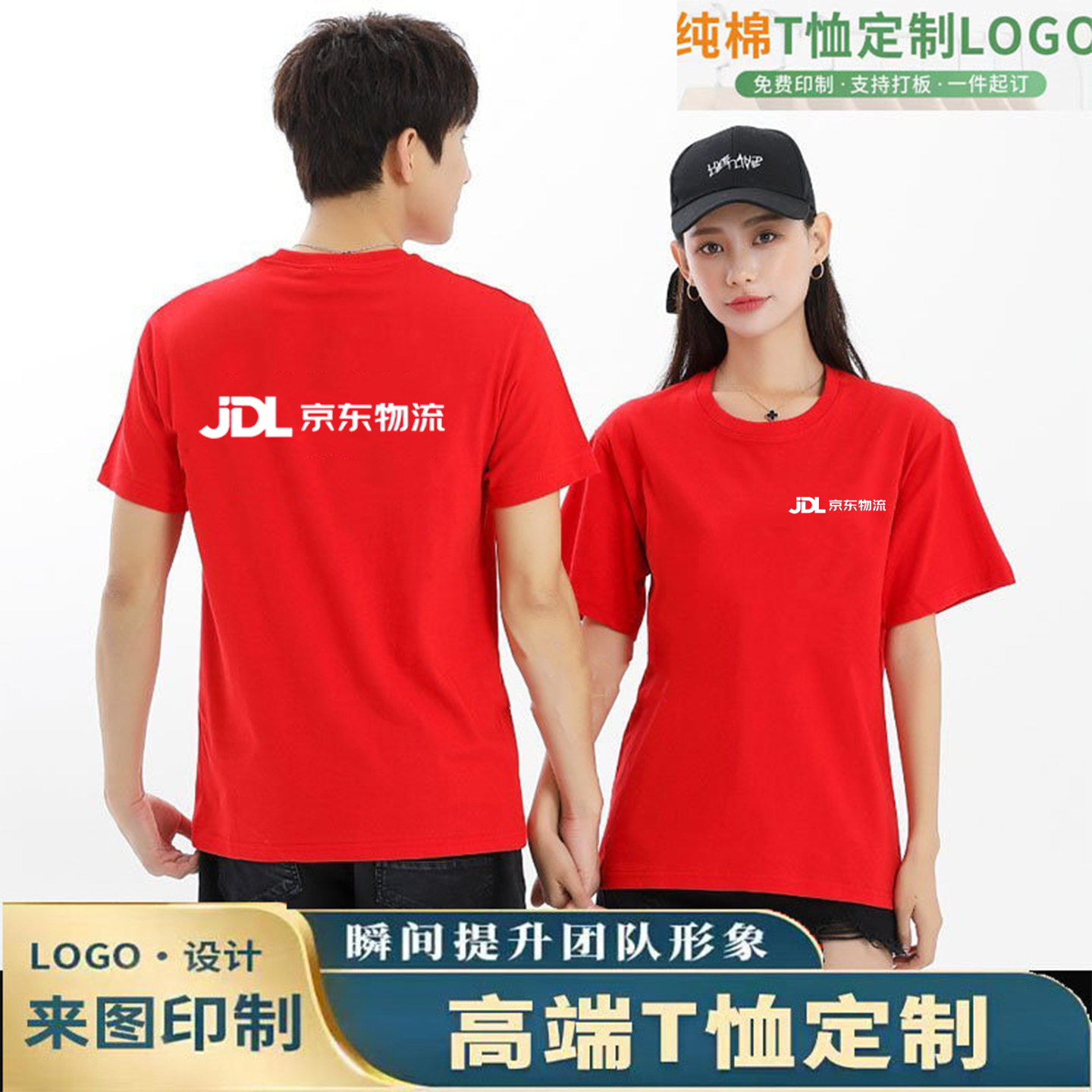京东服务家电物流工作服T恤定制超市餐饮纯棉圆领短袖工装印logo