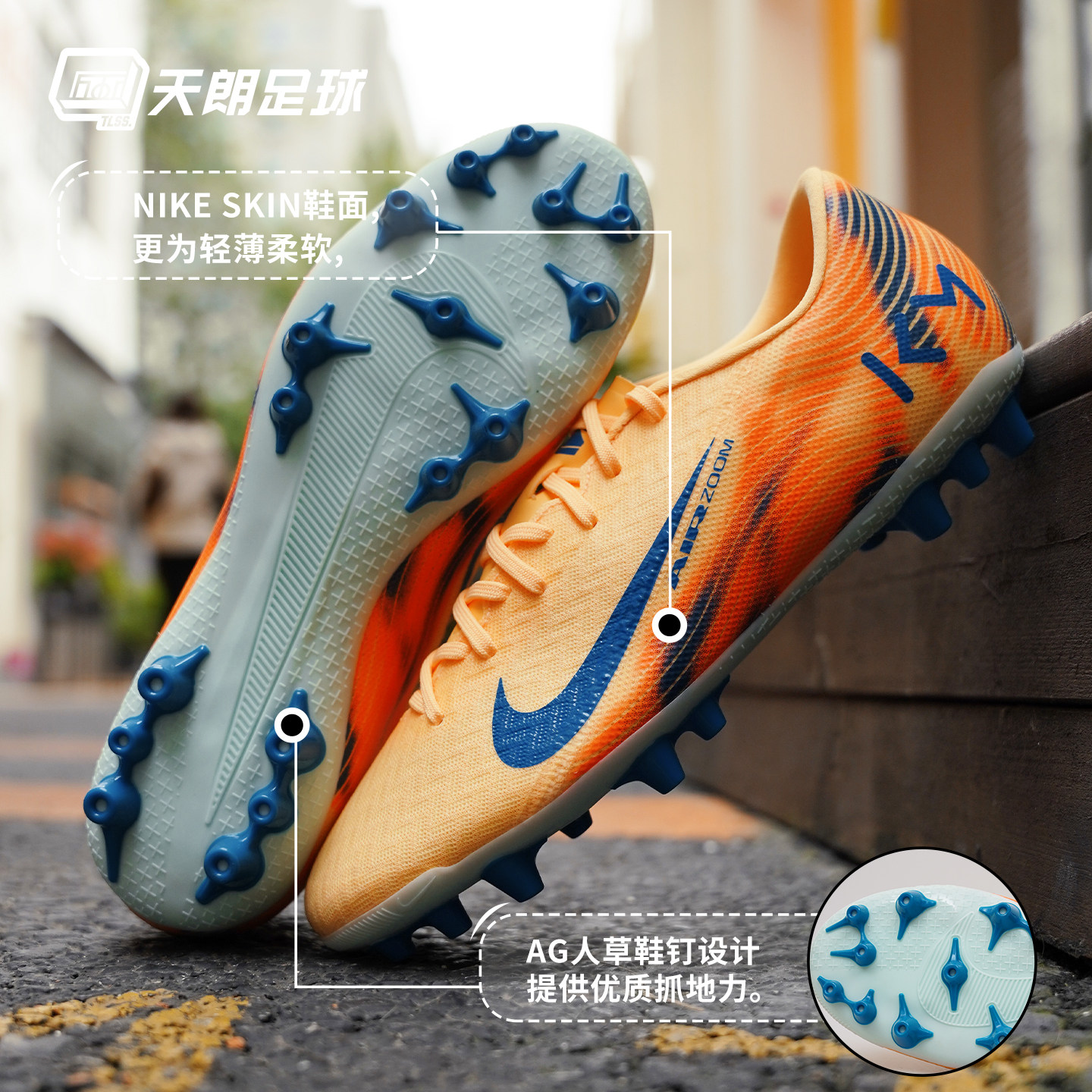天朗足球Nike耐克刺客16姆巴佩KM中端AG人草足球鞋成人FQ8365-801