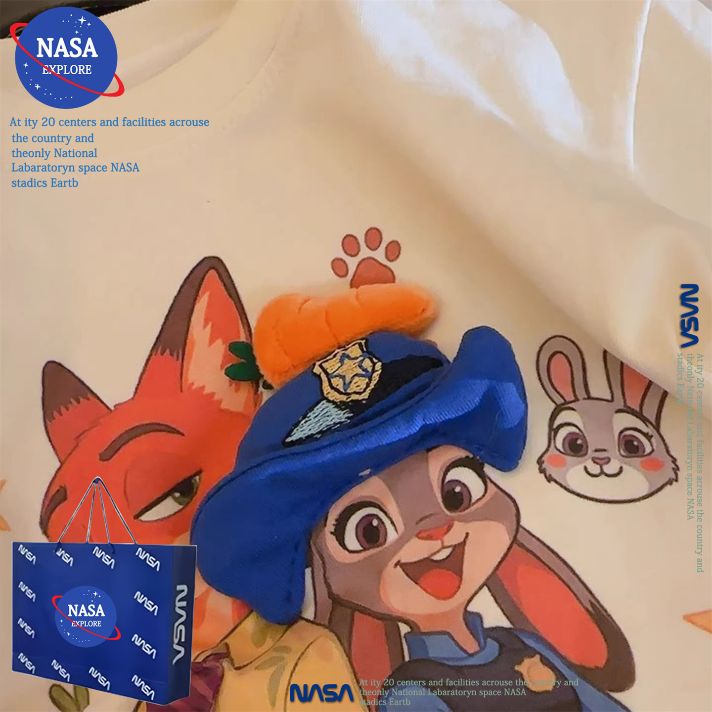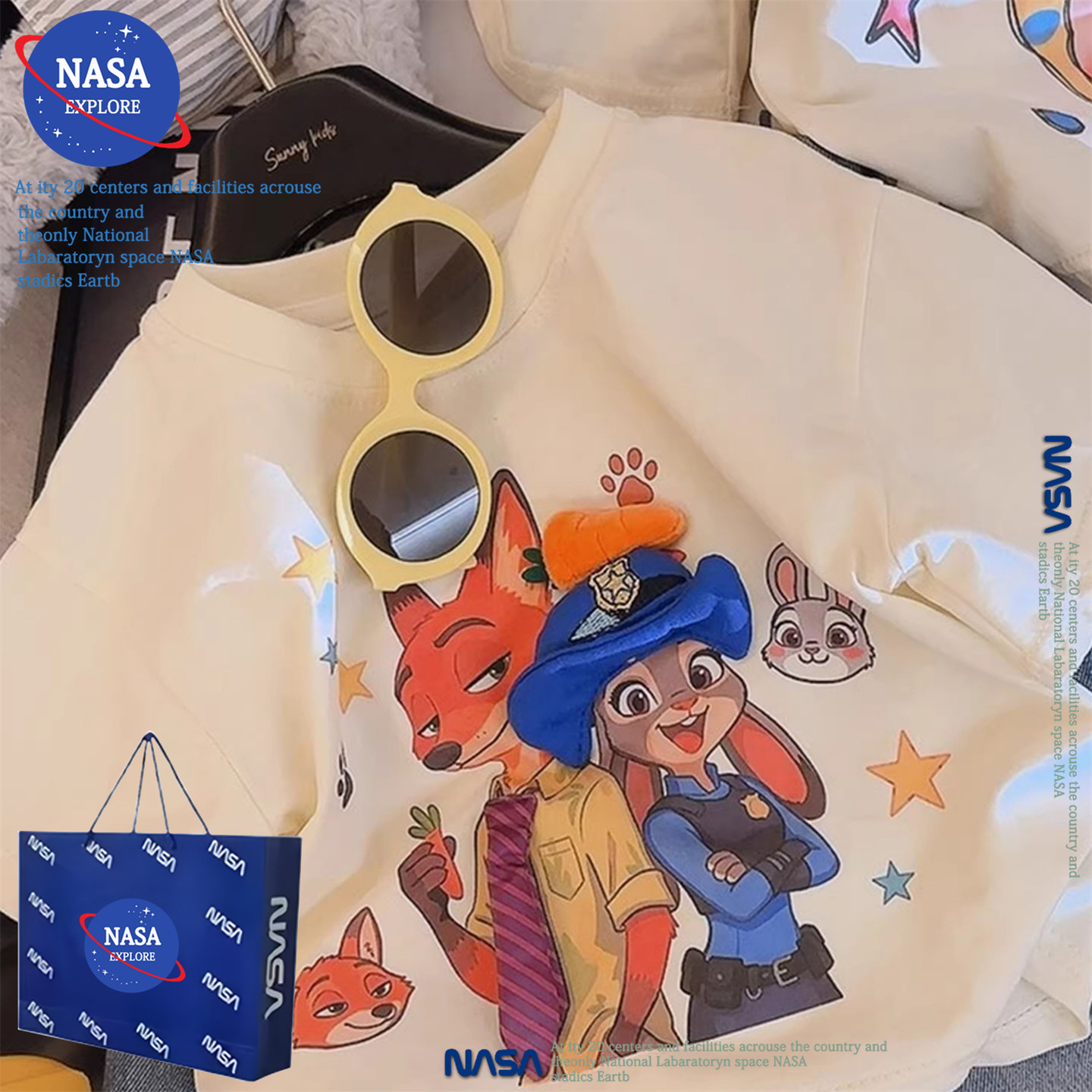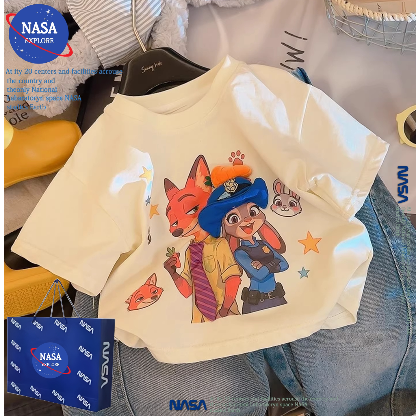 NASA儿童疯狂动物城卡通立体玩偶短袖T恤夏季新款男女童纯棉上衣