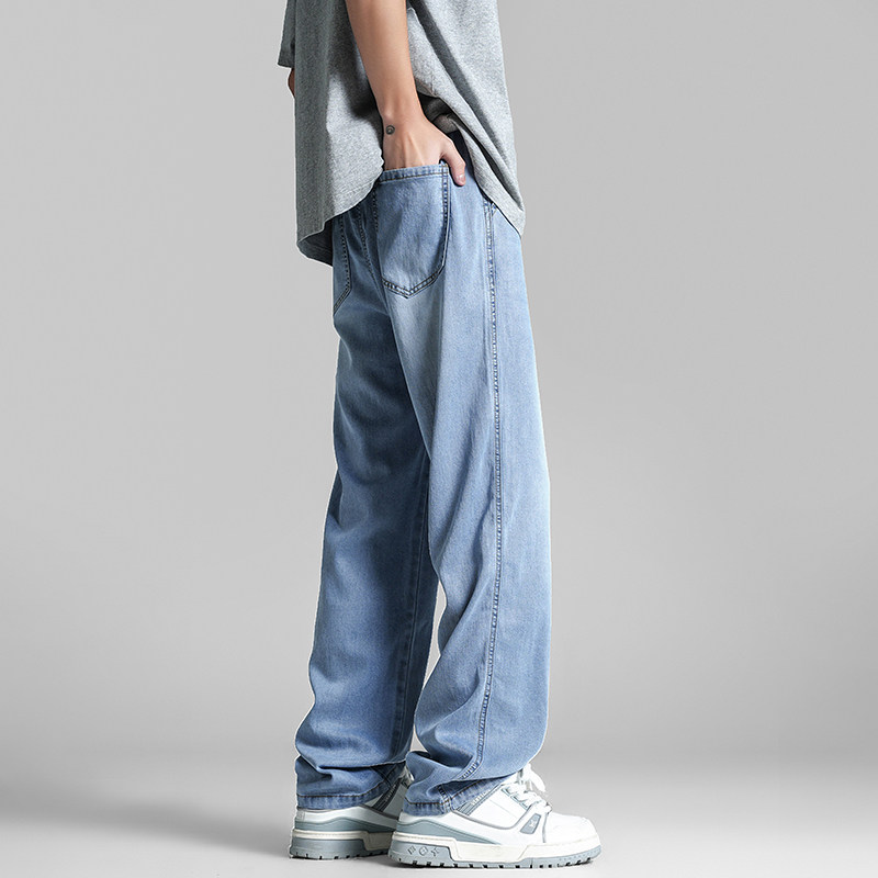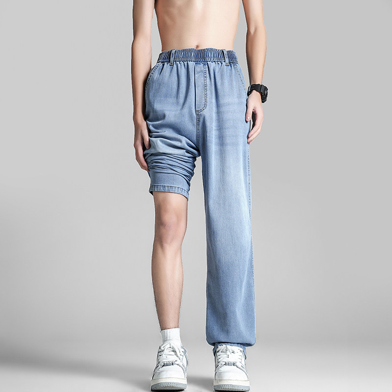 高个子加长天丝牛仔裤男款夏季薄款青少年2026莱赛尔冰丝直筒裤子