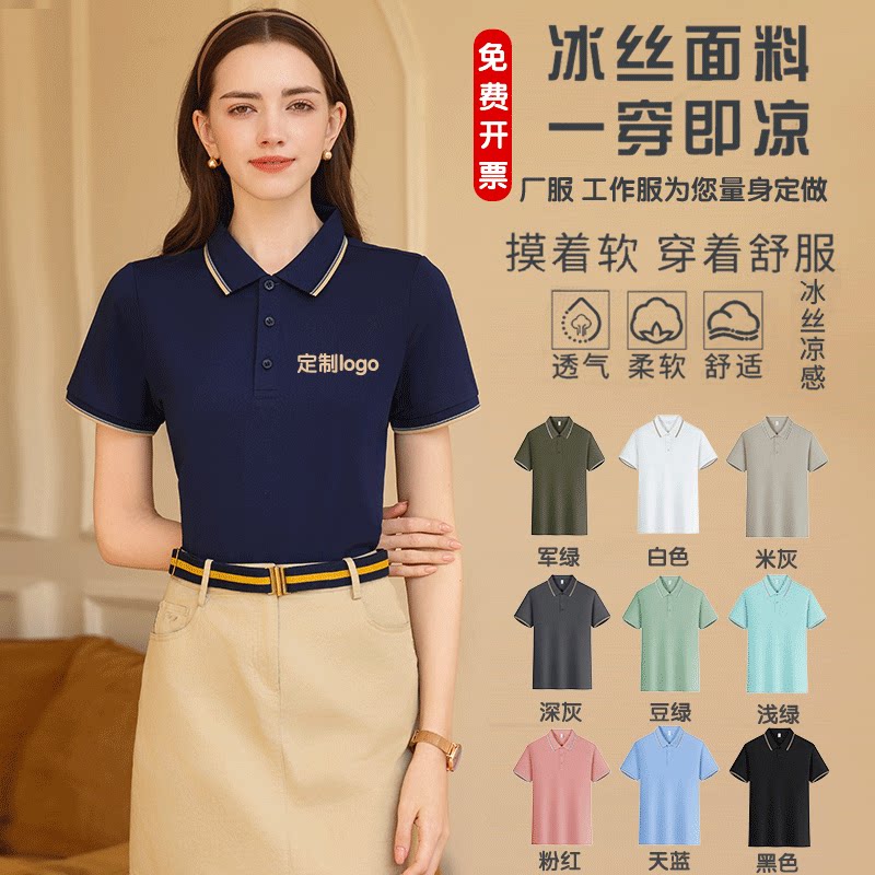 夏季工作服定制工装短袖企业翻领厂服订做t恤纯棉工衣工服印LOGO