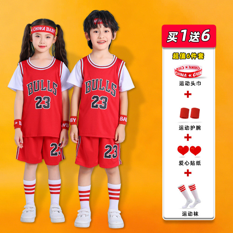儿童篮球服六一表演服套装短袖假两件小学生幼儿园男童女训练球衣