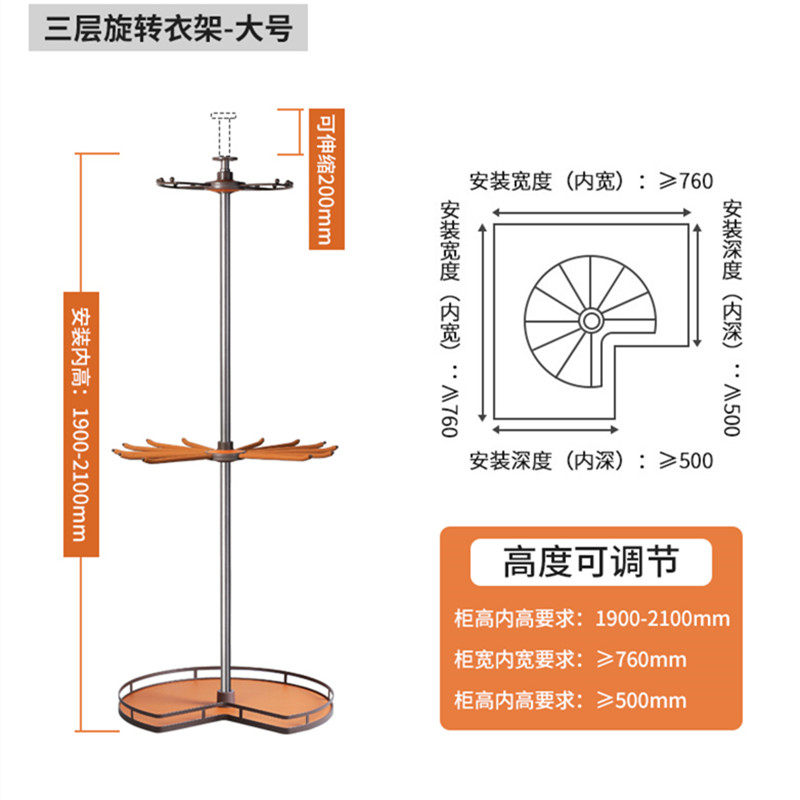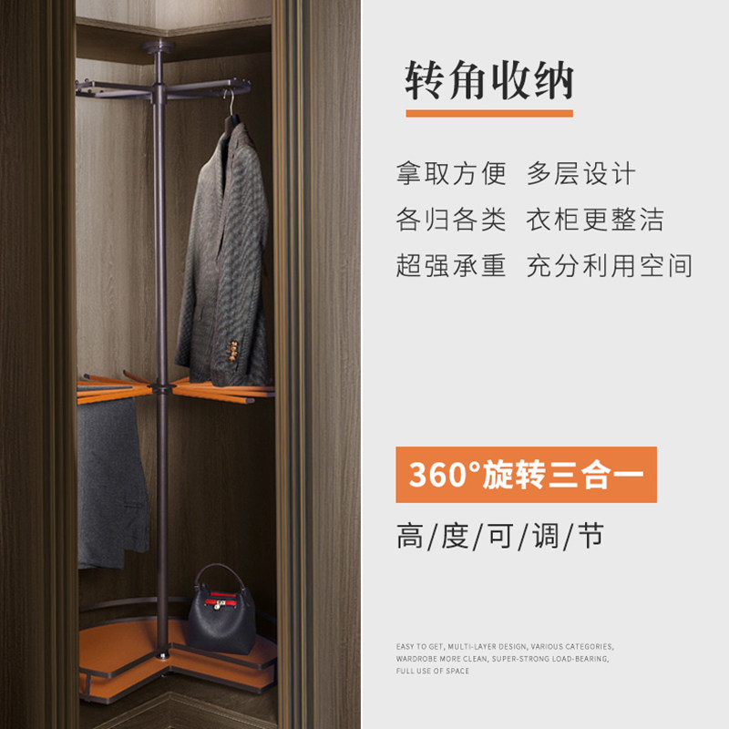 衣柜转角旋转架360度收纳衣架衣帽间多功能裤架储物拉篮五金配件