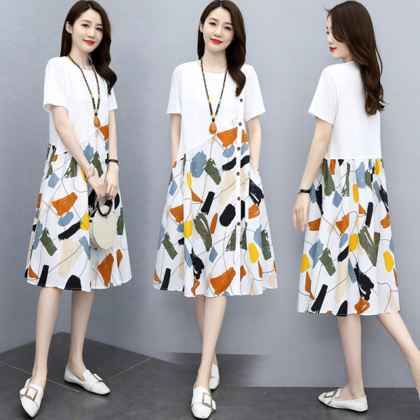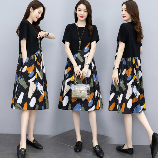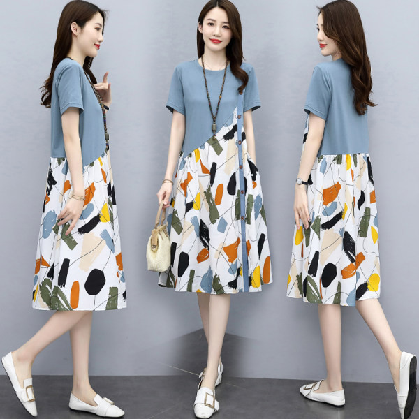 2025夏季新款大码气质连衣裙显瘦拼接宽松遮肚子胖mm女装a字裙