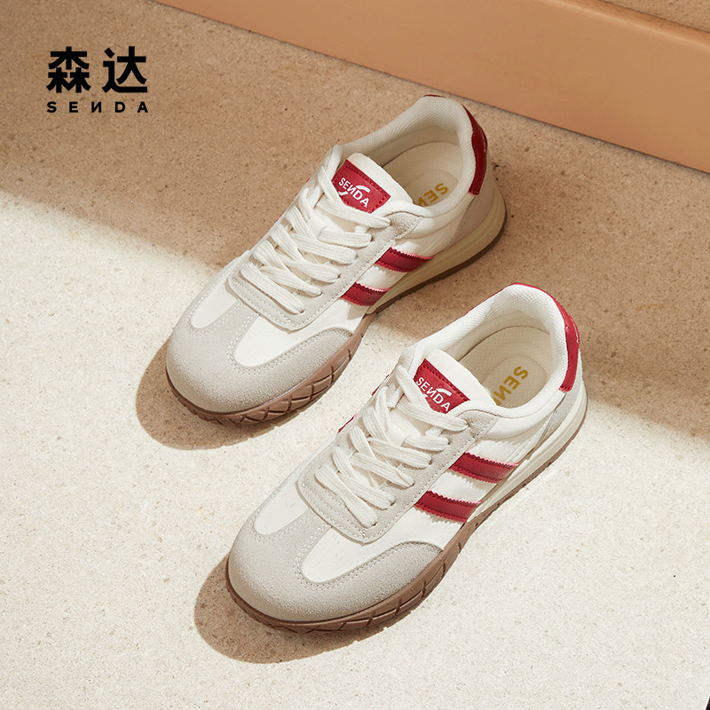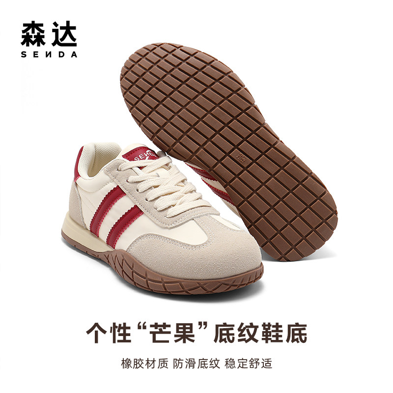 森达红色阿甘鞋女鞋春秋百搭芒果鞋德训鞋休闲鞋WPZ87CM4