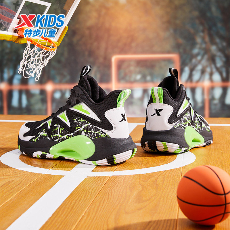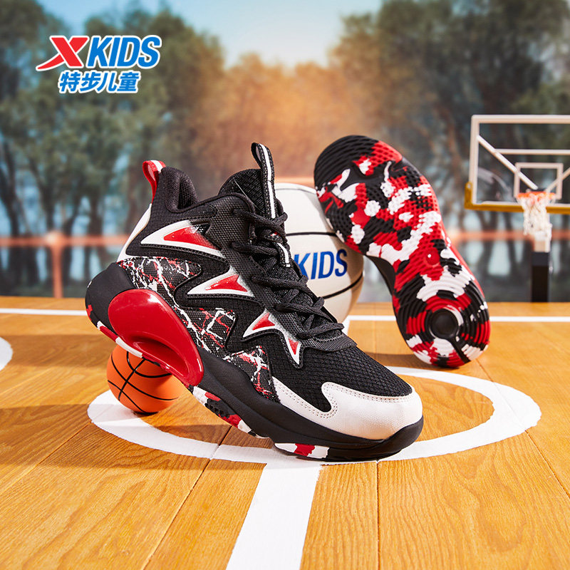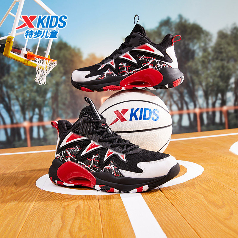 特步童鞋春秋款大童实战篮球鞋儿童高帮密网运动鞋男童旋转扣鞋子