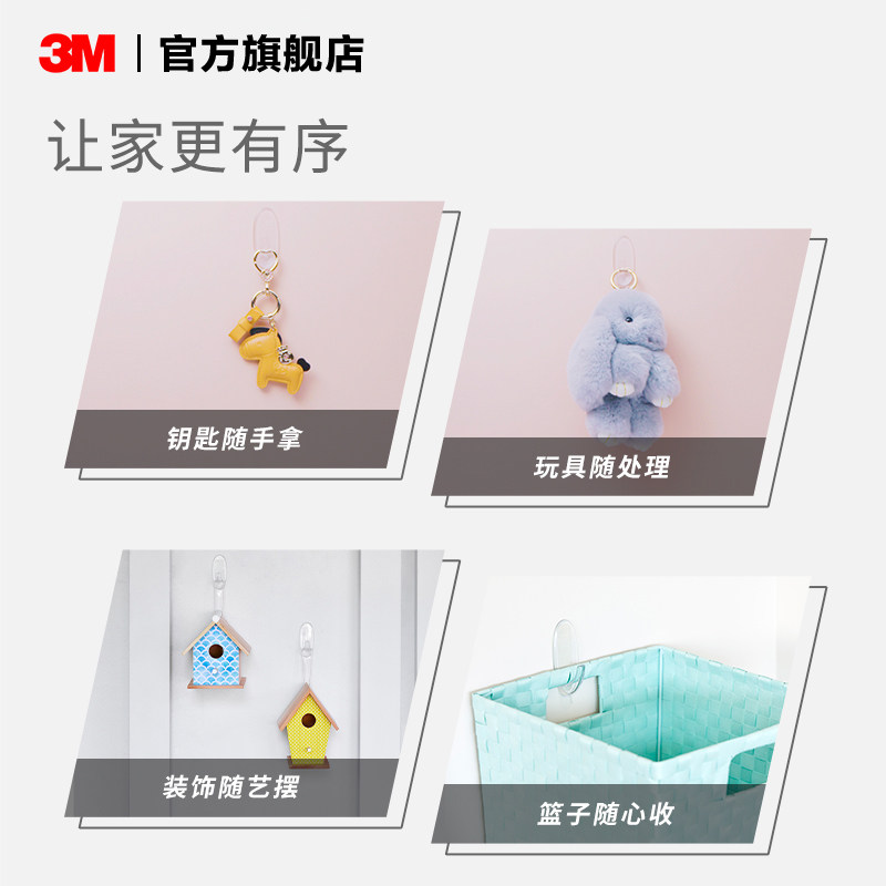 3M无痕透明迷你挂钩隐形粘钩创意装饰免打孔乳胶漆墙面不易伤墙