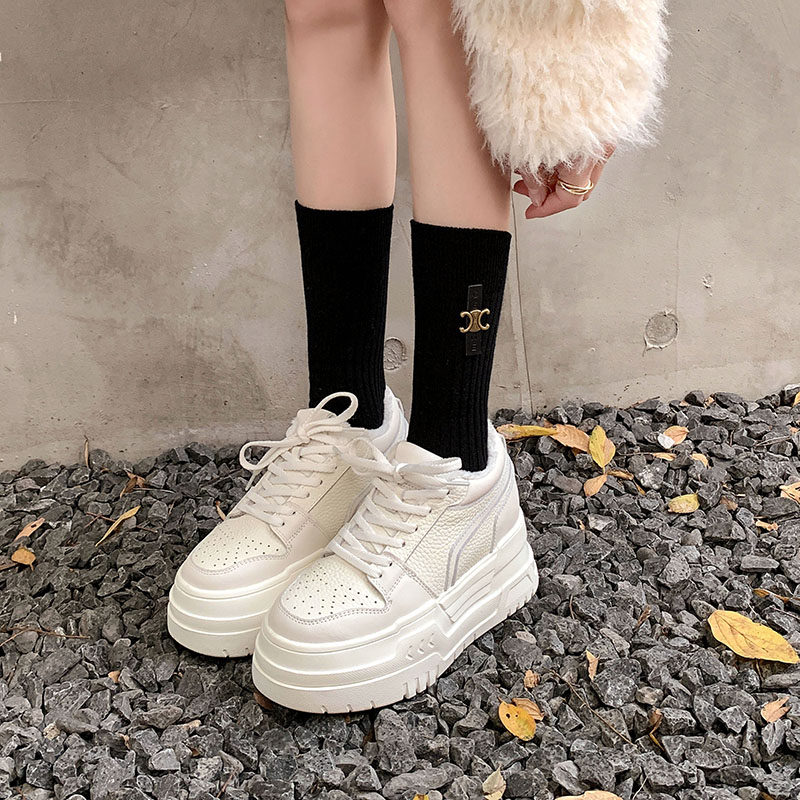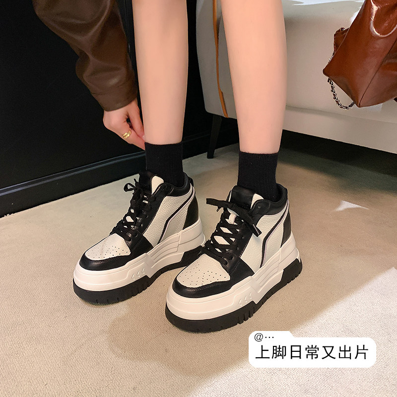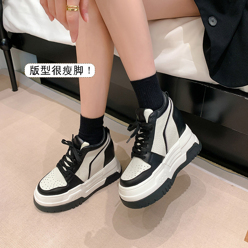 14cm内增高小白鞋女小个子春夏新款真皮隐形12公分10厘米厚底板鞋