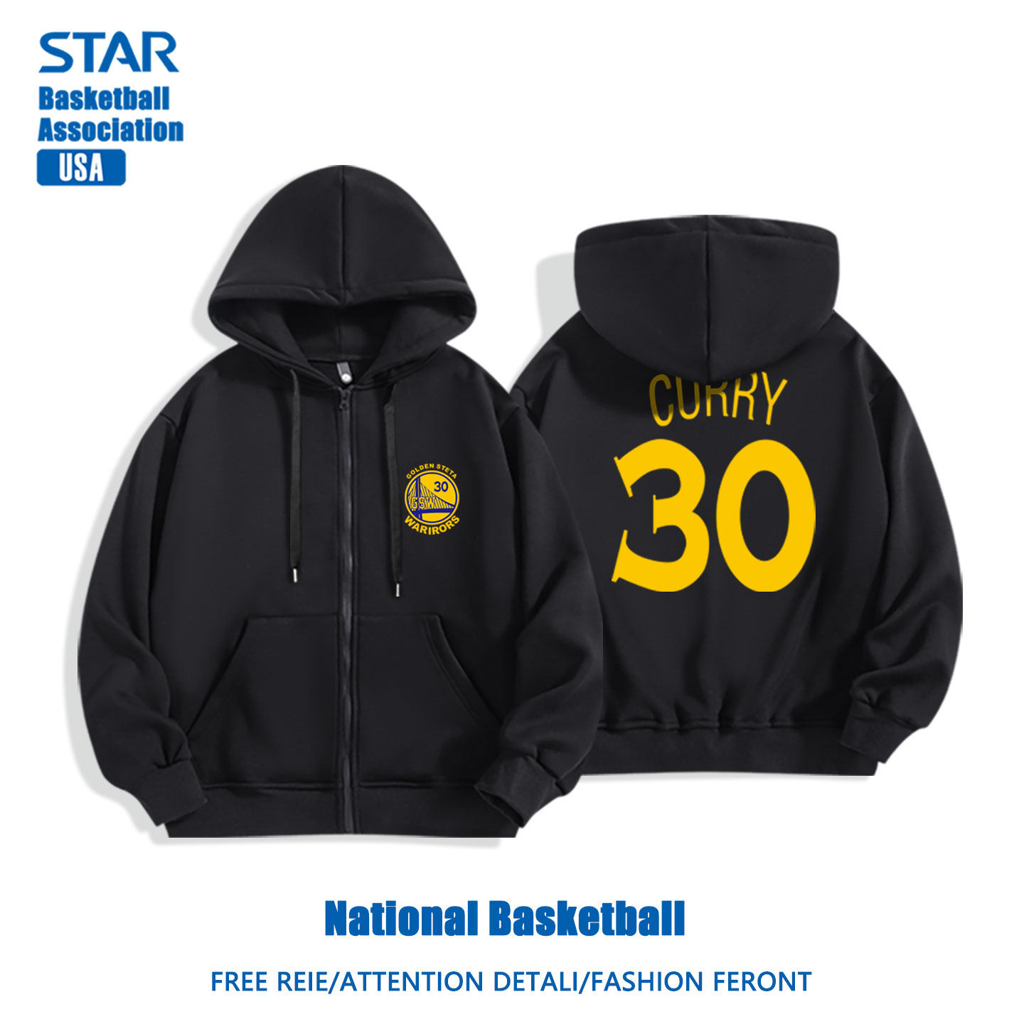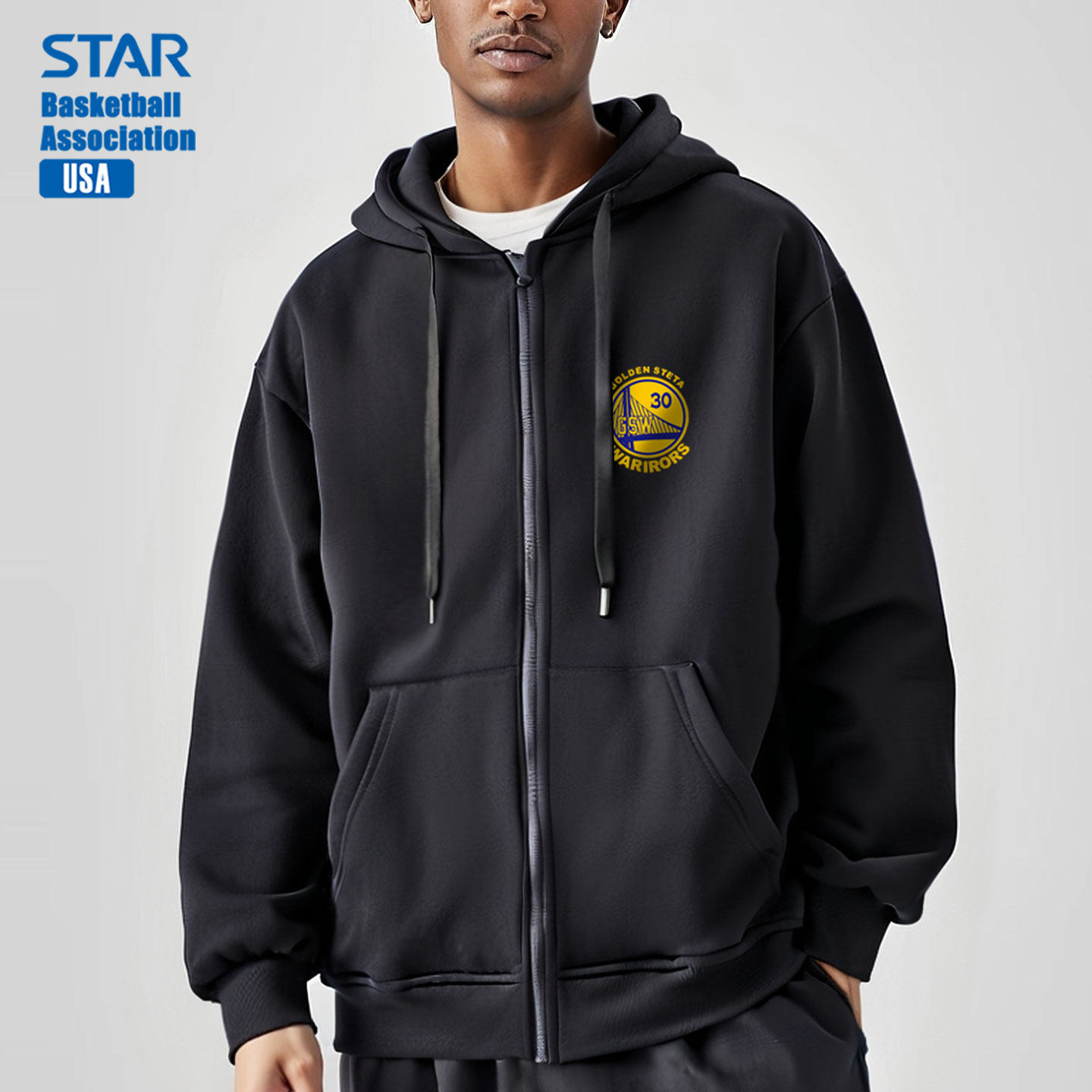 勇士队库里30篮球服训练外套卫衣男秋冬季宽松拉链开衫长袖运动