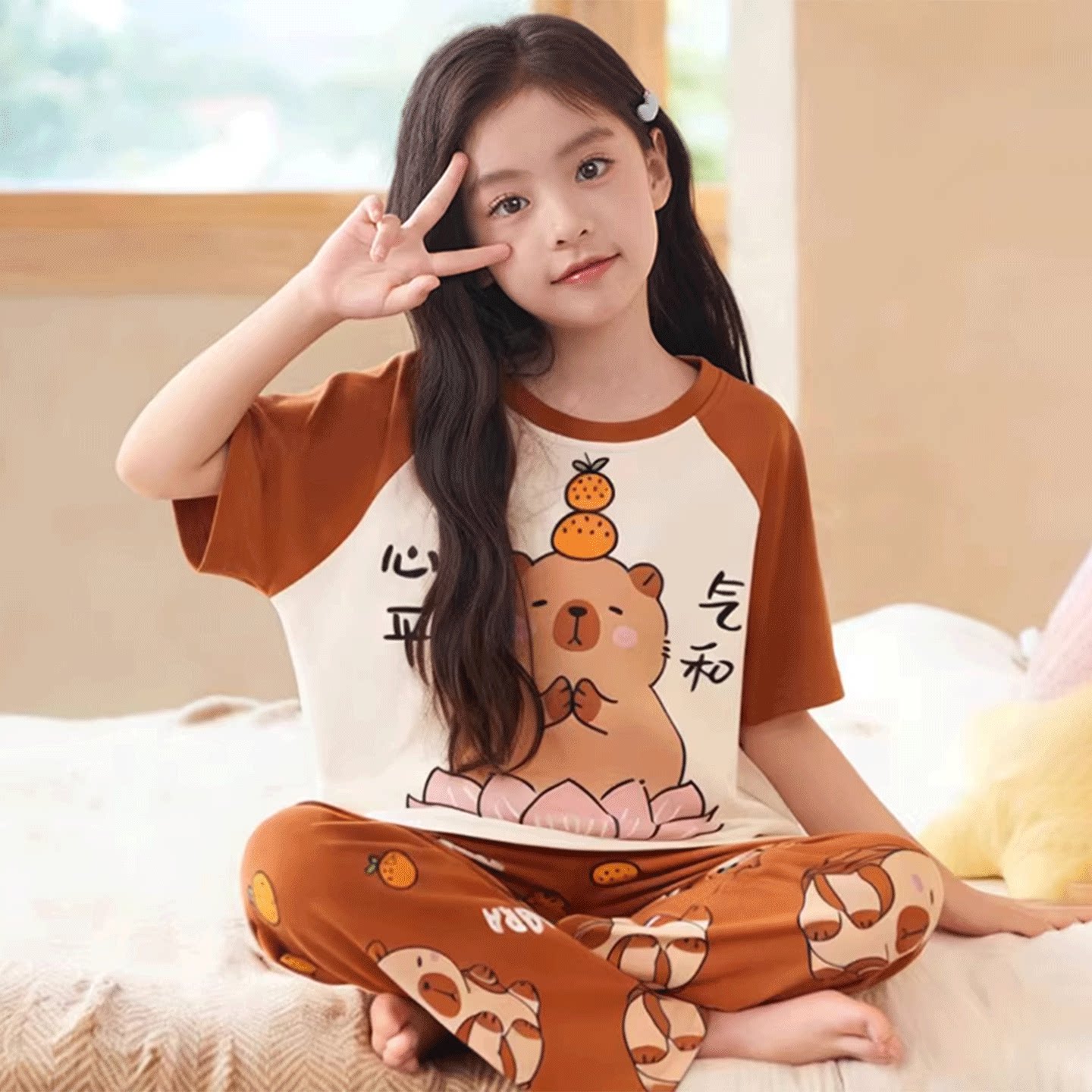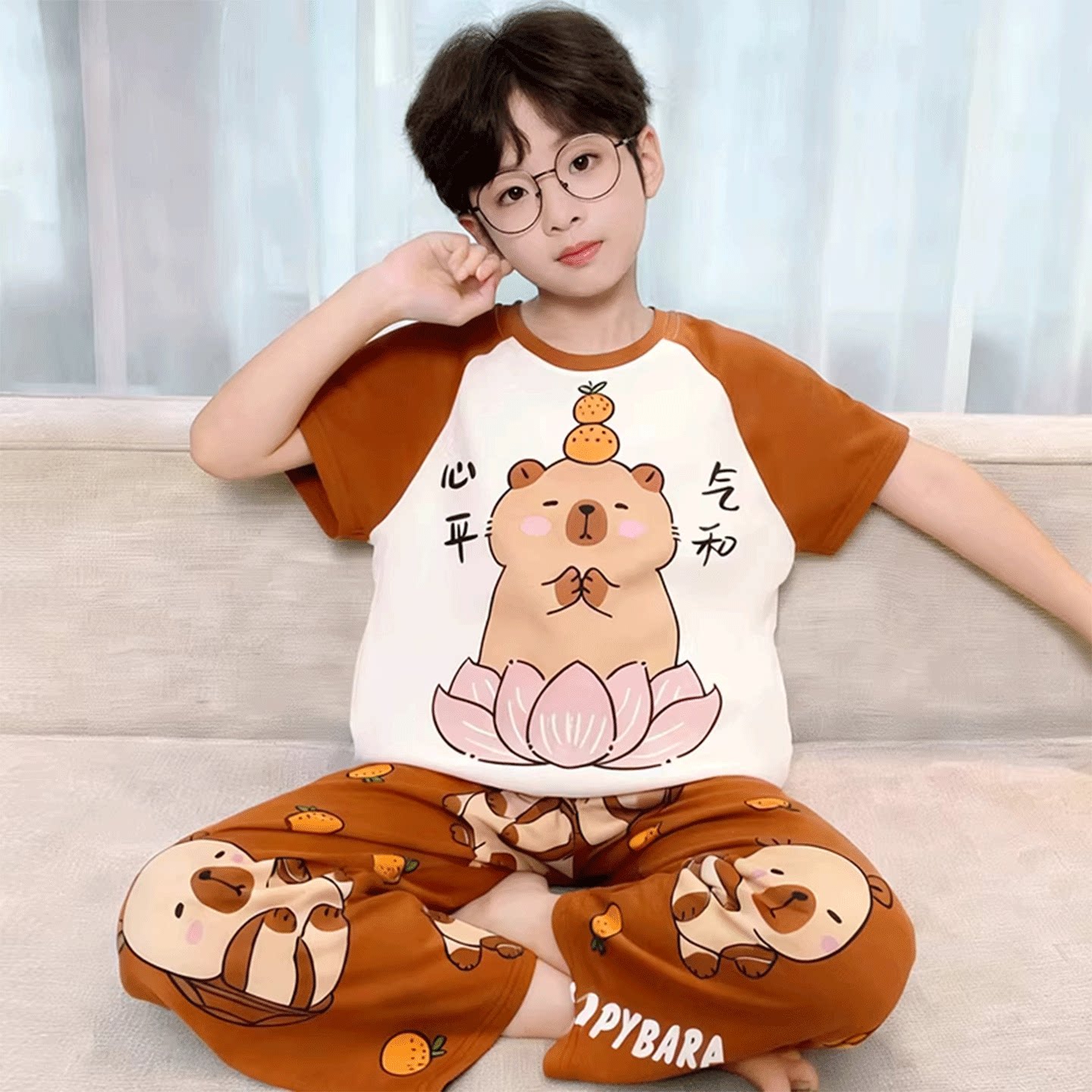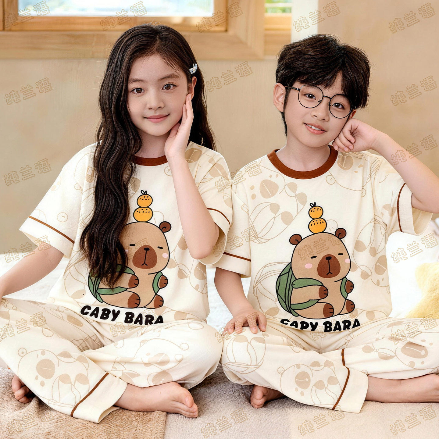 311线报网描述:儿童短袖纯棉夏季薄款中大童卡皮巴拉家居服