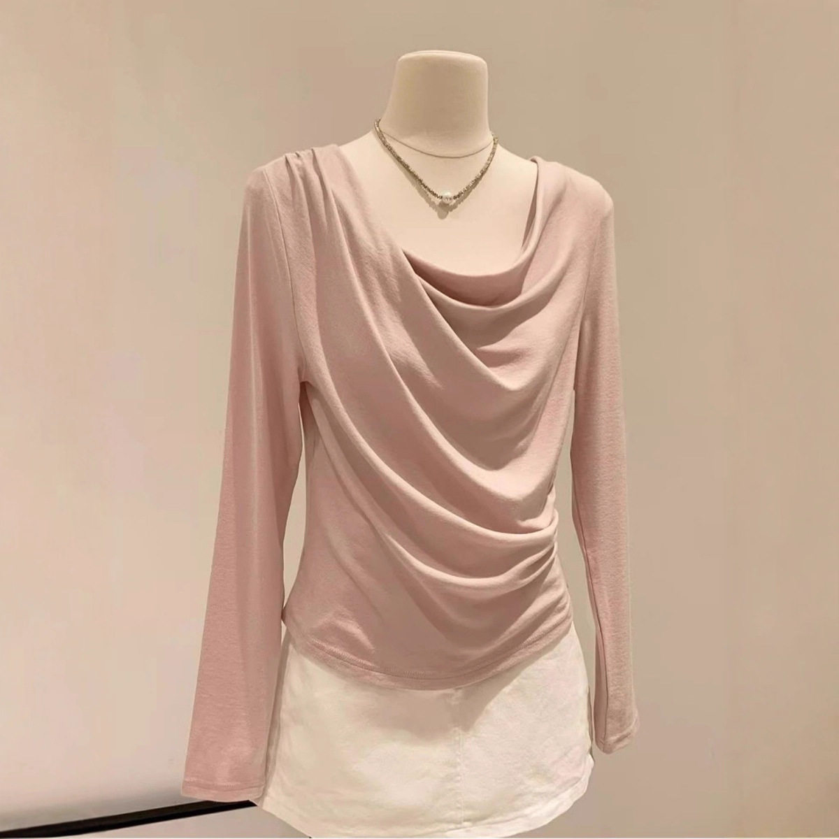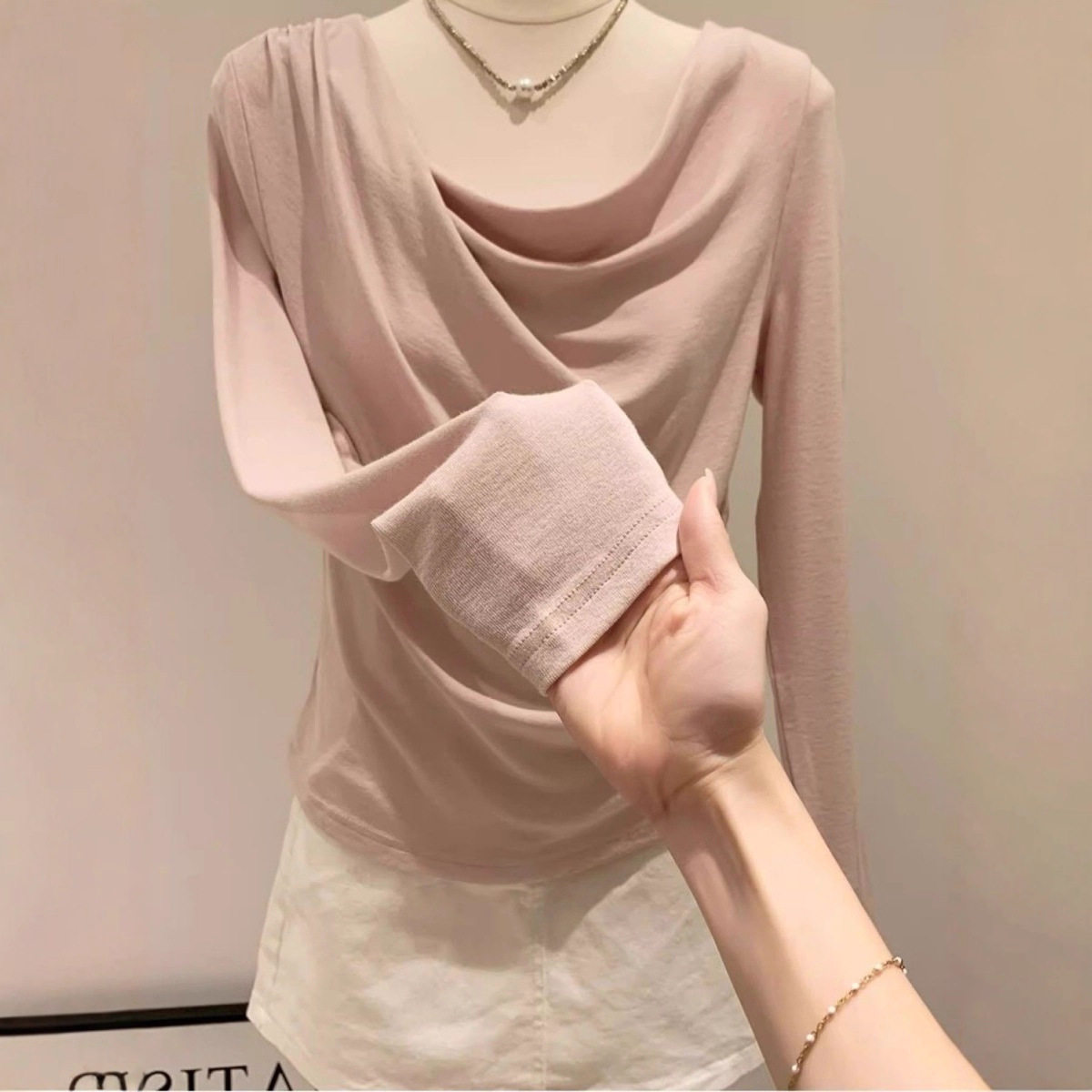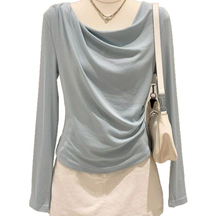 长袖打底衫女款2026新款潮莫代尔洋气荡领薄款修身显瘦长袖T恤女