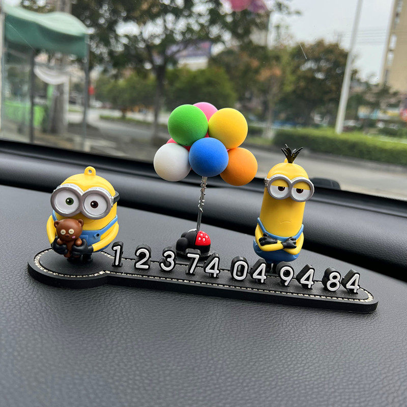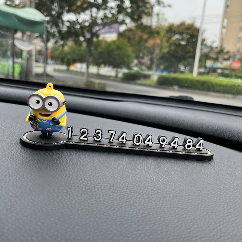小黄人汽车内临时停车号码牌创意挪车电话数字牌车载车用移车摆件