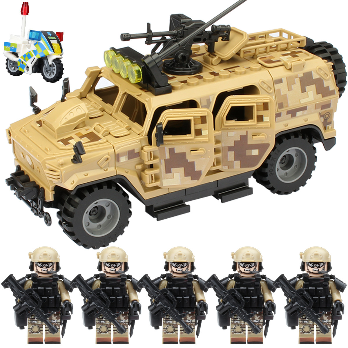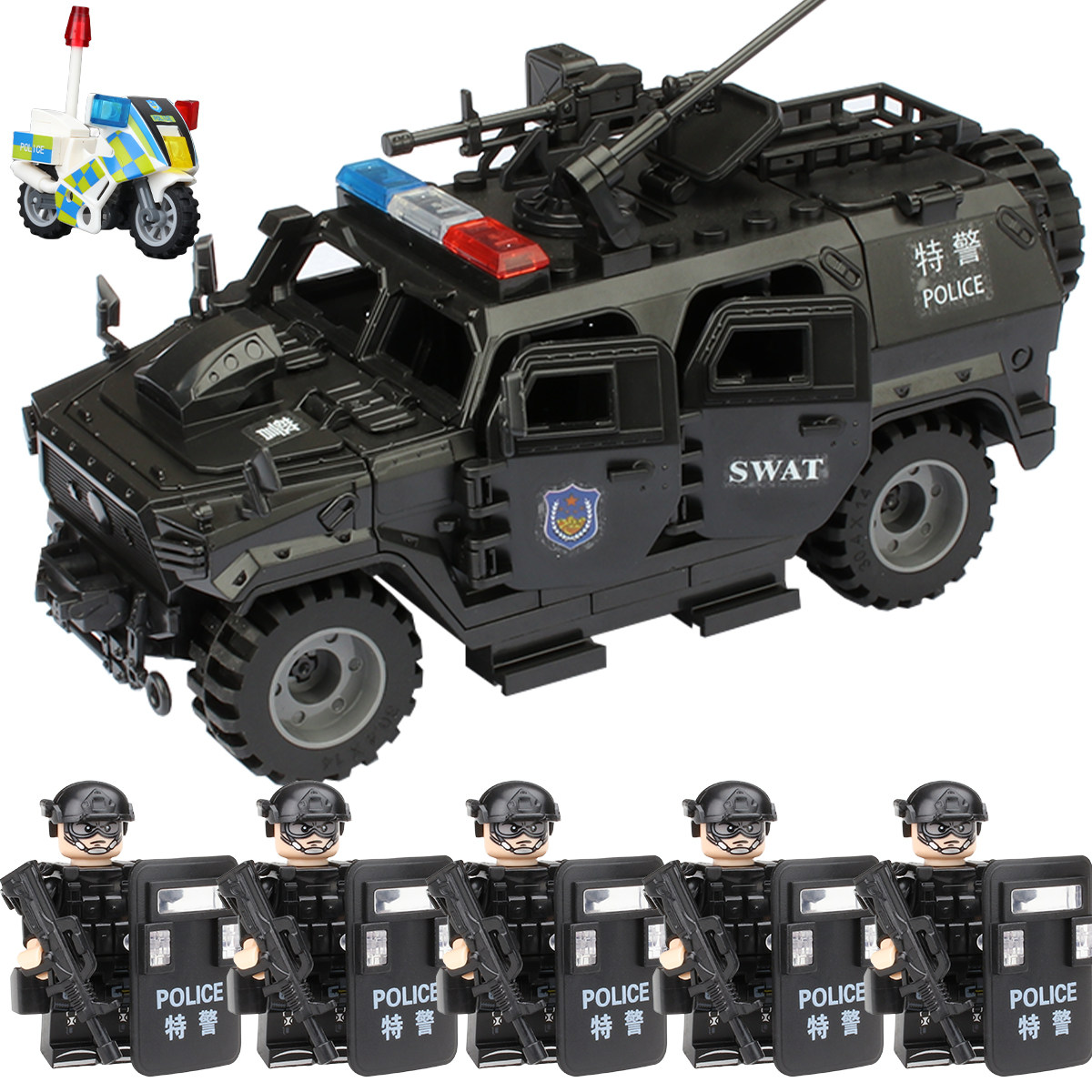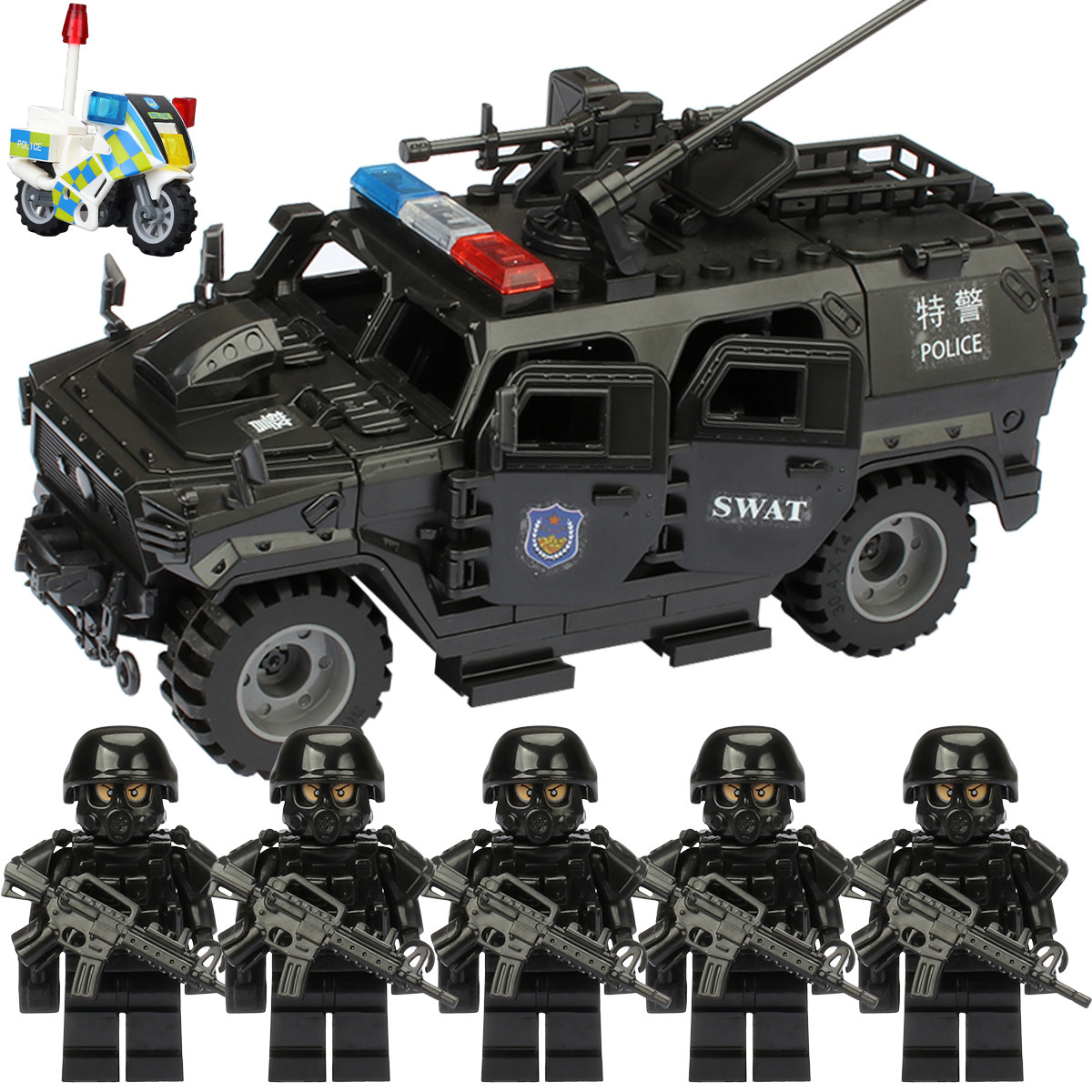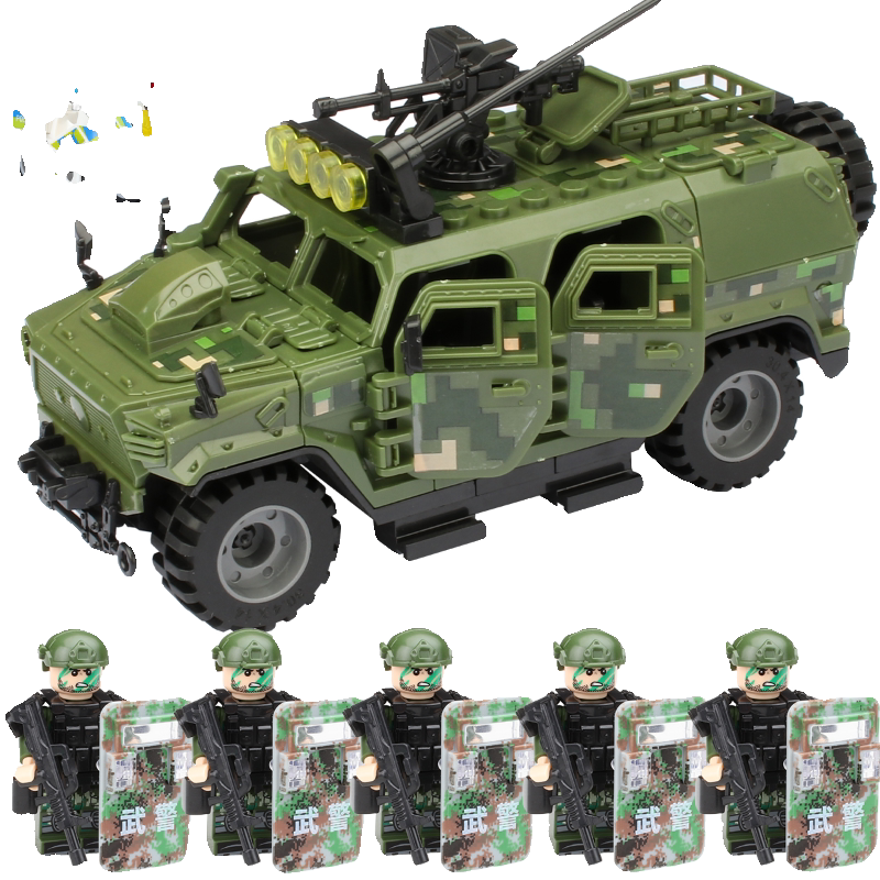 适用于乐高军事积木防爆特警察悍马装甲车士兵人仔特种兵拼装玩具