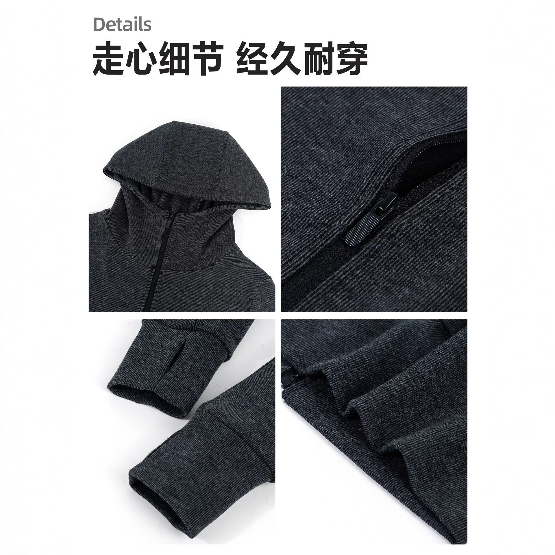 灰色条纹休闲运动套装女卫衣2026春季新款女装小个子连帽外套春装