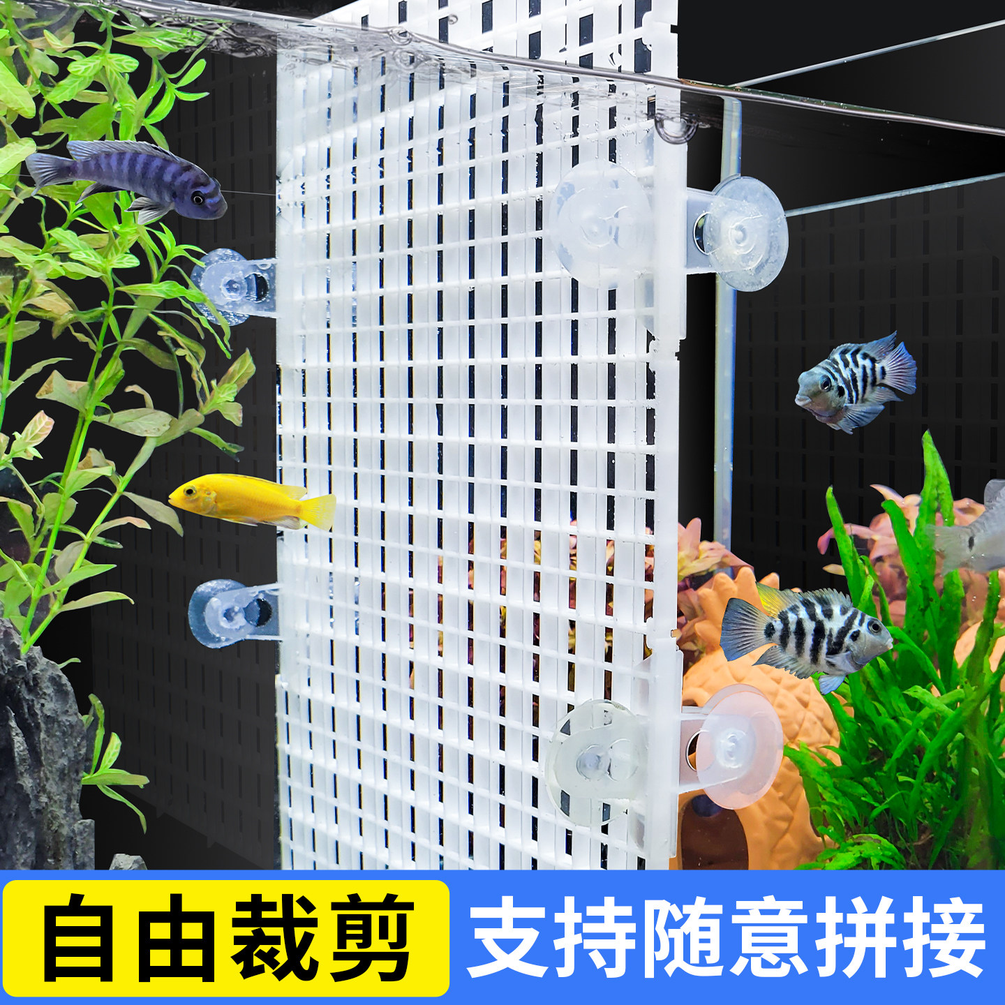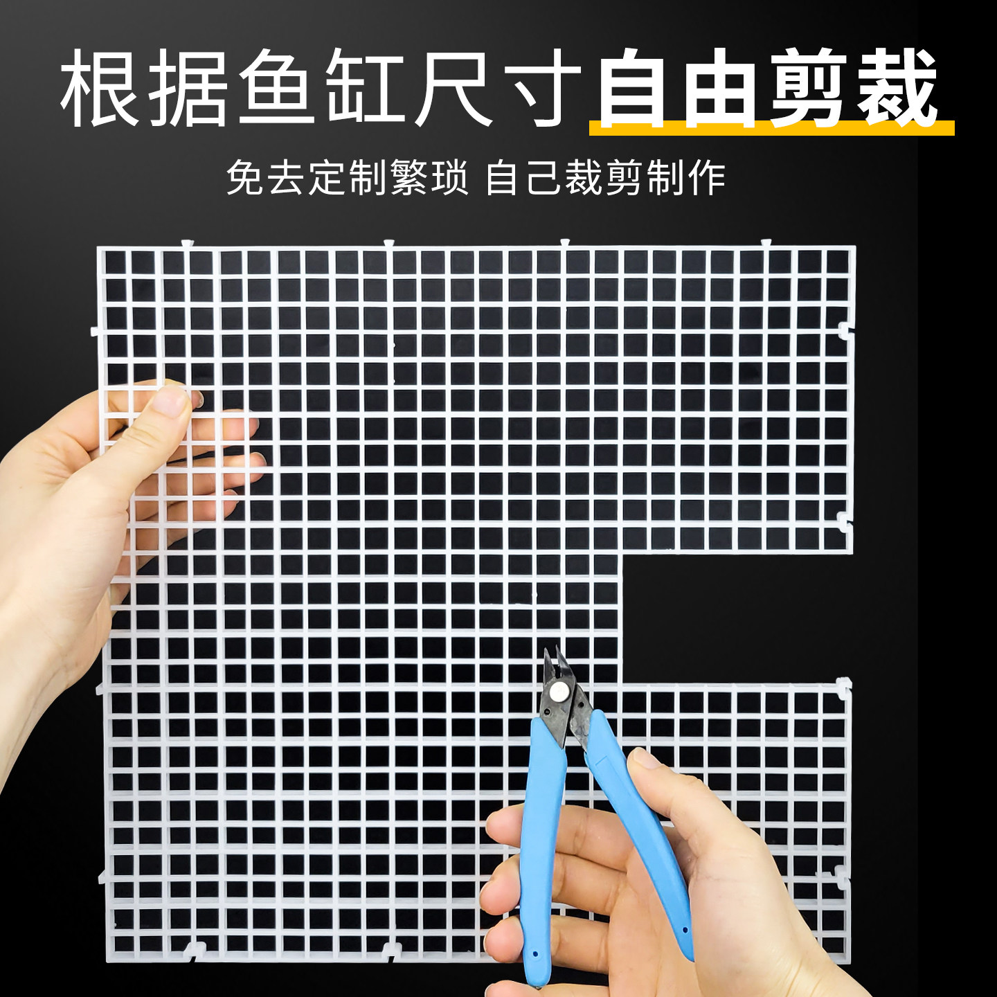 鱼缸盖板防跳网透明黑白色网格板加密隔离网隔板底滤板水族箱底板