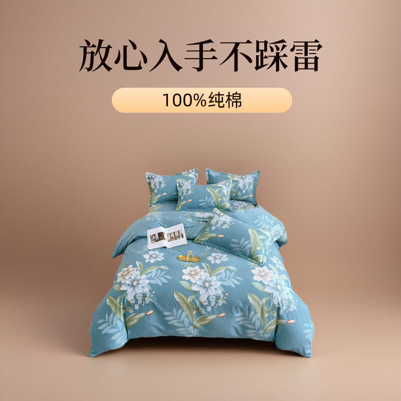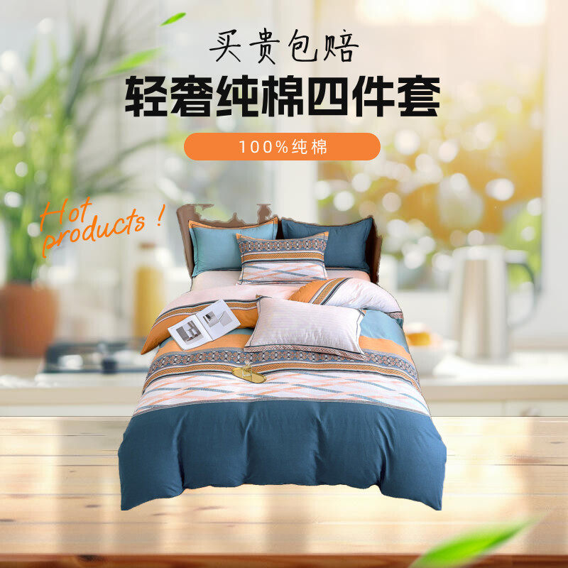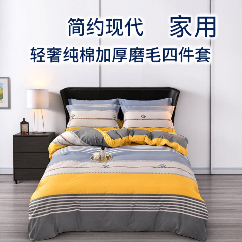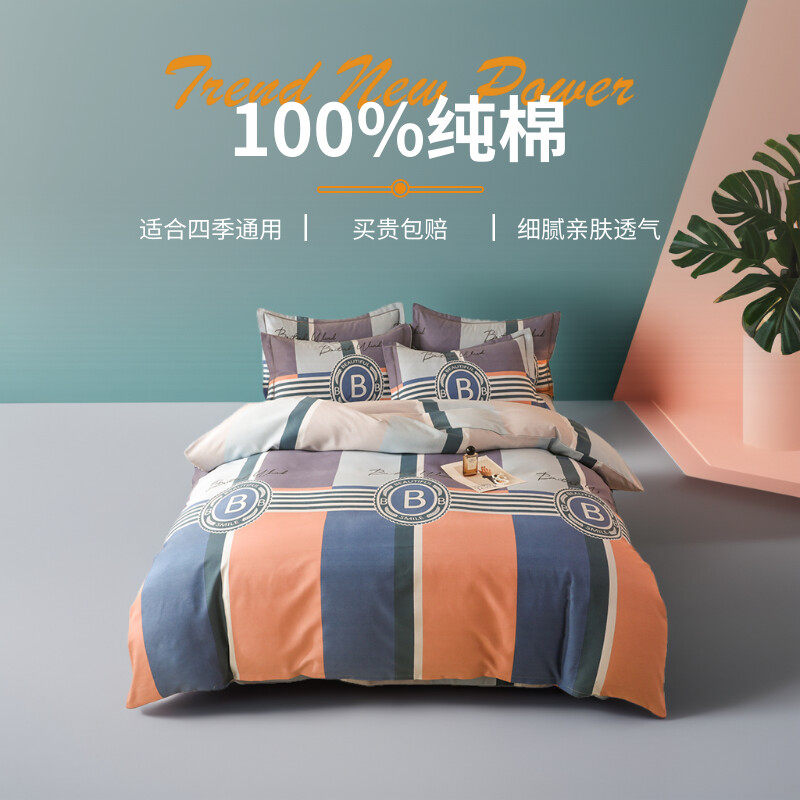 巨好看男生条纹四件套纯棉60支高级感四季通用100%全棉磨毛精品被