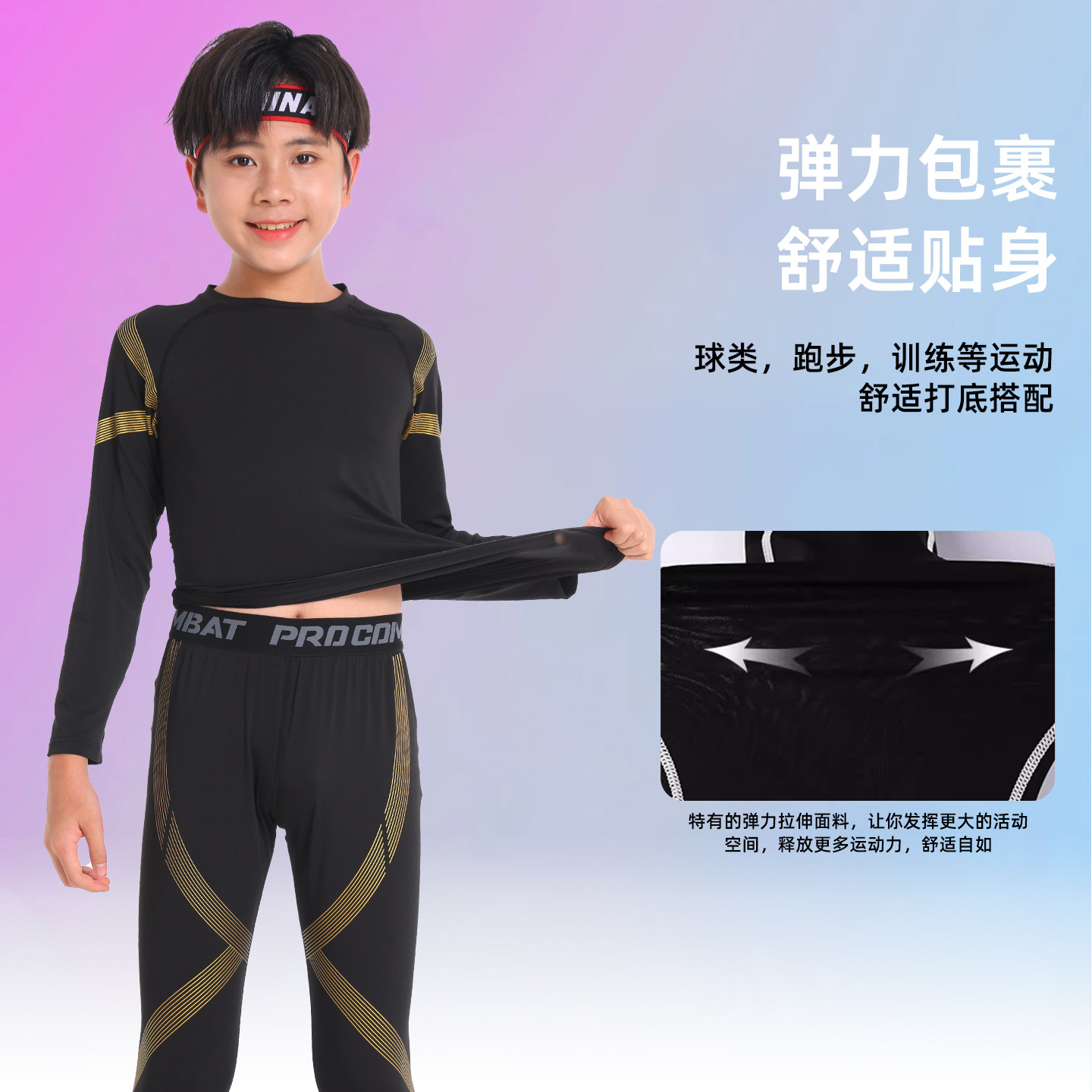 儿童羽毛球服女童篮球紧身衣训练服速干衣内搭男款打底衫体适能服