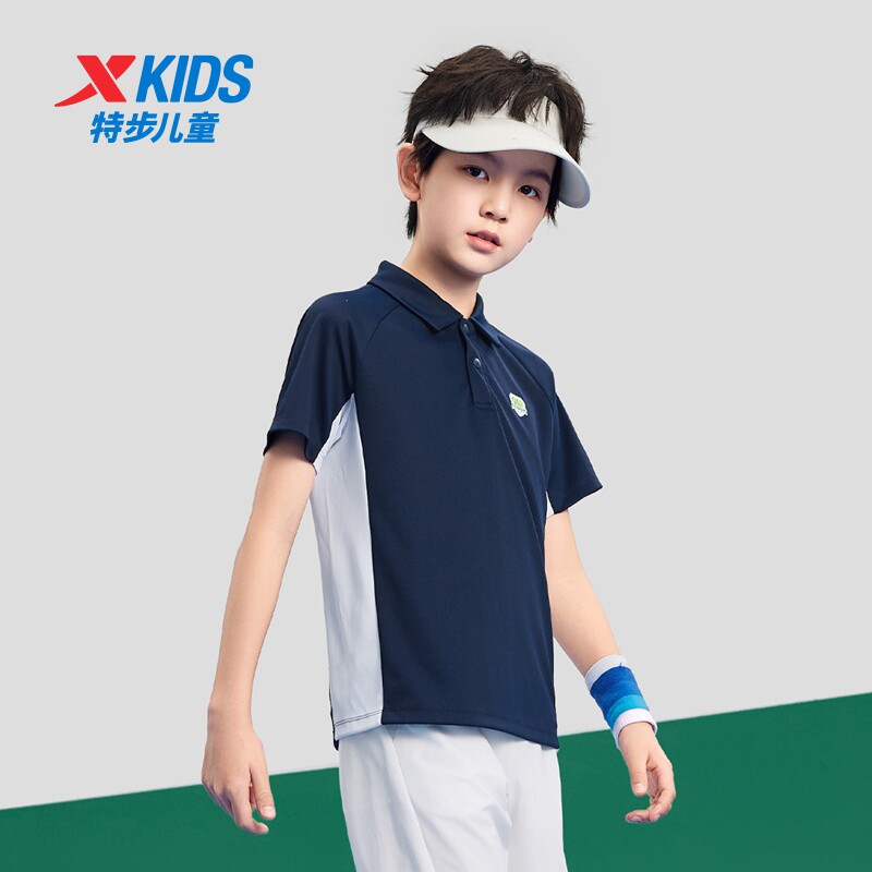 特步童装男童拼接速干网球POLO衫2026夏季款儿童短袖T恤大童夏装