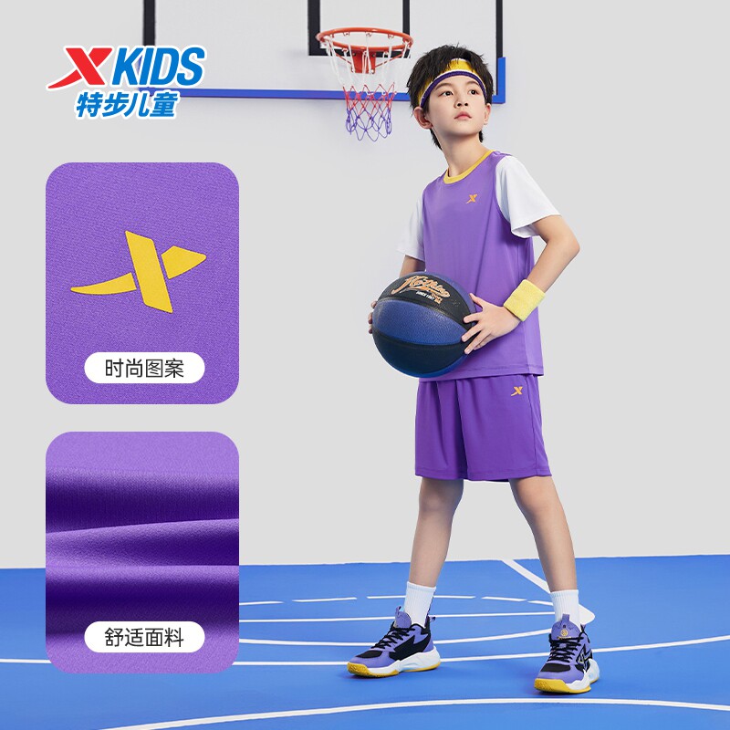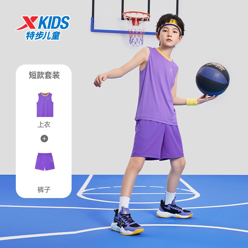 特步儿童篮球服套装夏季运动风两件套速干透气排汗男女童