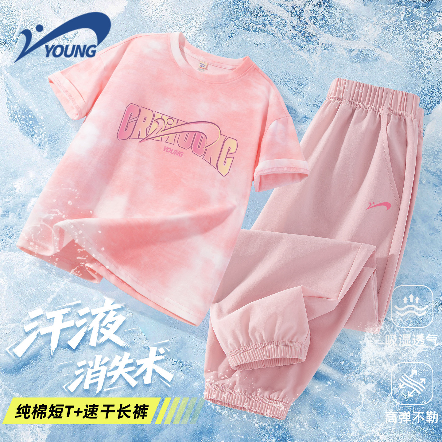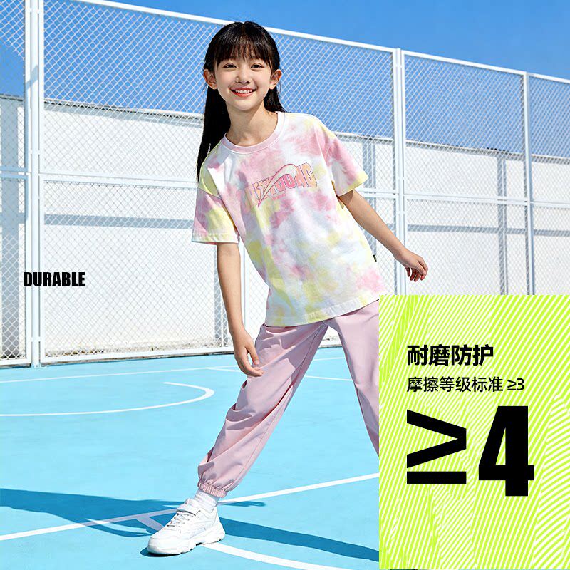 贵人鸟童装女童夏套装大童洋气纯棉短袖t恤儿童夏季速干运动长裤