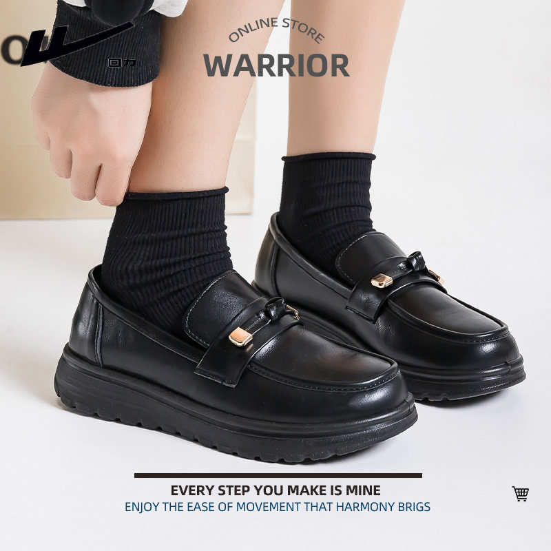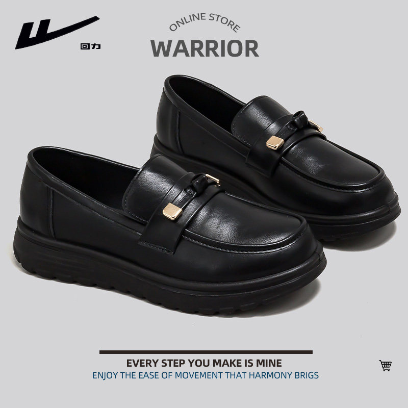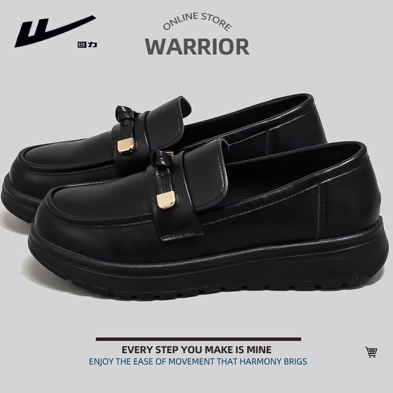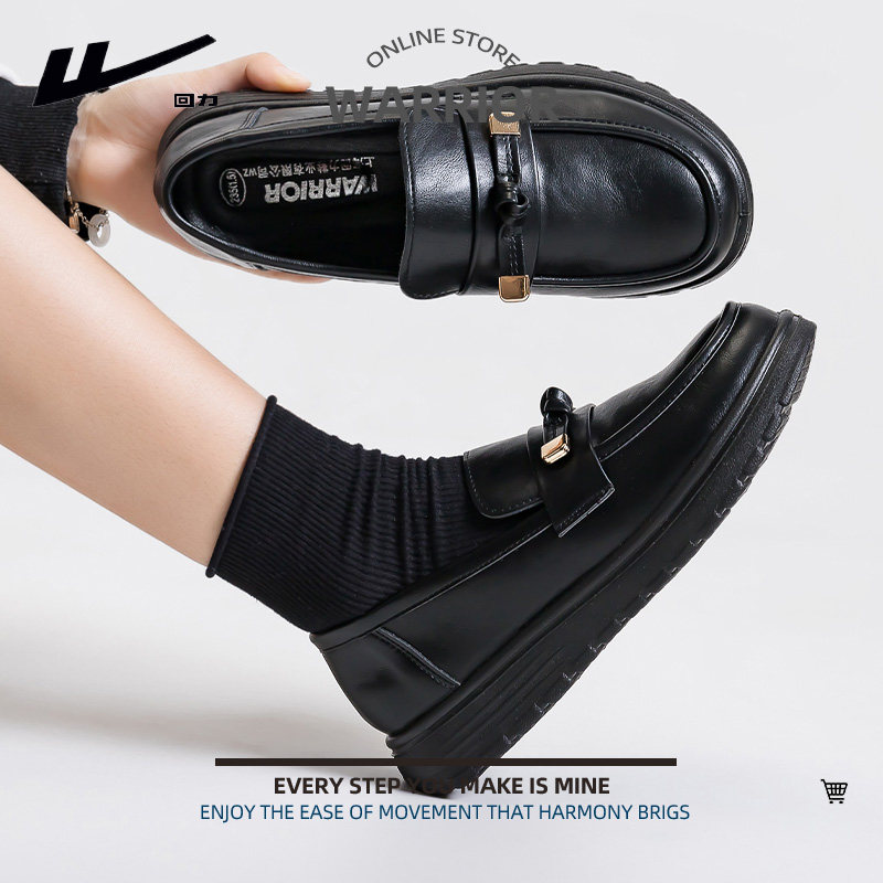 回力女鞋春夏款英伦复古风黑色小皮鞋防水一脚蹬软底内增高豆豆鞋