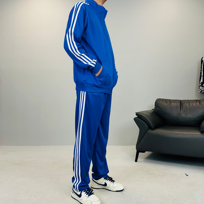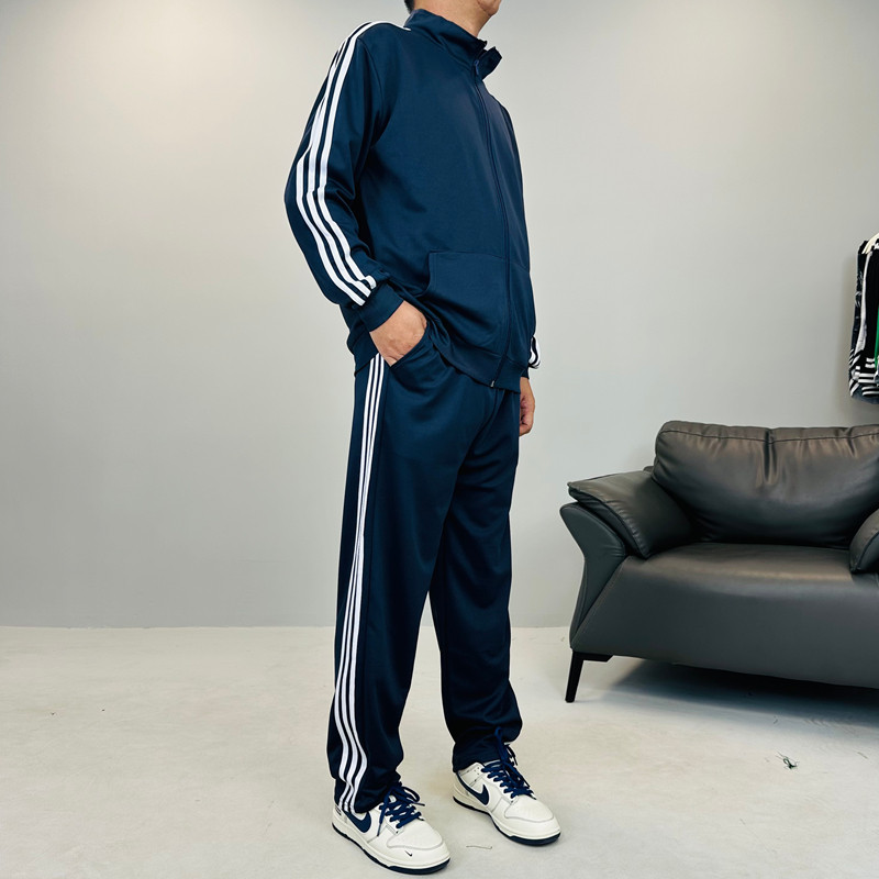 运动套装男宽松直筒休闲三条杠条纹校服裤秋冬薄款大码拉链运动服