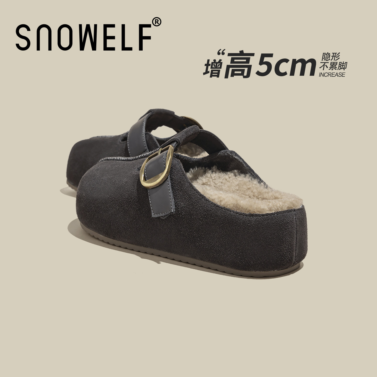 311线报网描述:snowelf官方正品真皮加绒勃肯半拖鞋
