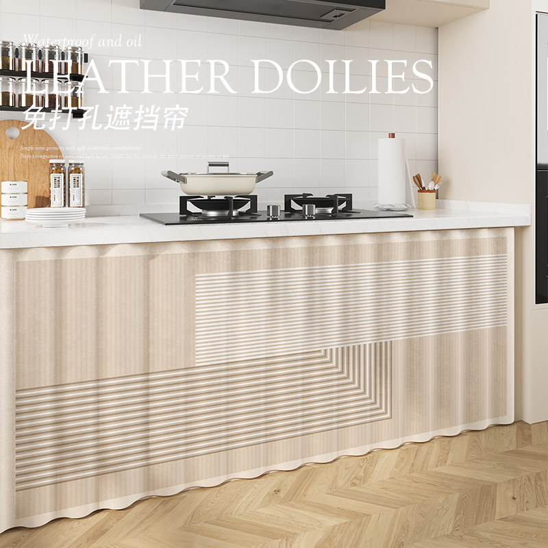 柜子遮挡帘厨房橱柜杂物遮丑布帘置物架柜门免打孔防尘魔术贴帘子